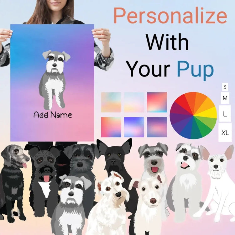 Unleash your furry love with our unique gifts for Schnauzer lovers. Designed with both Schnauzers and people in mind, this canvas print is a heartfelt tribute to your four-legged friend. Customize it with your pup's likeness and personalize it with their name.