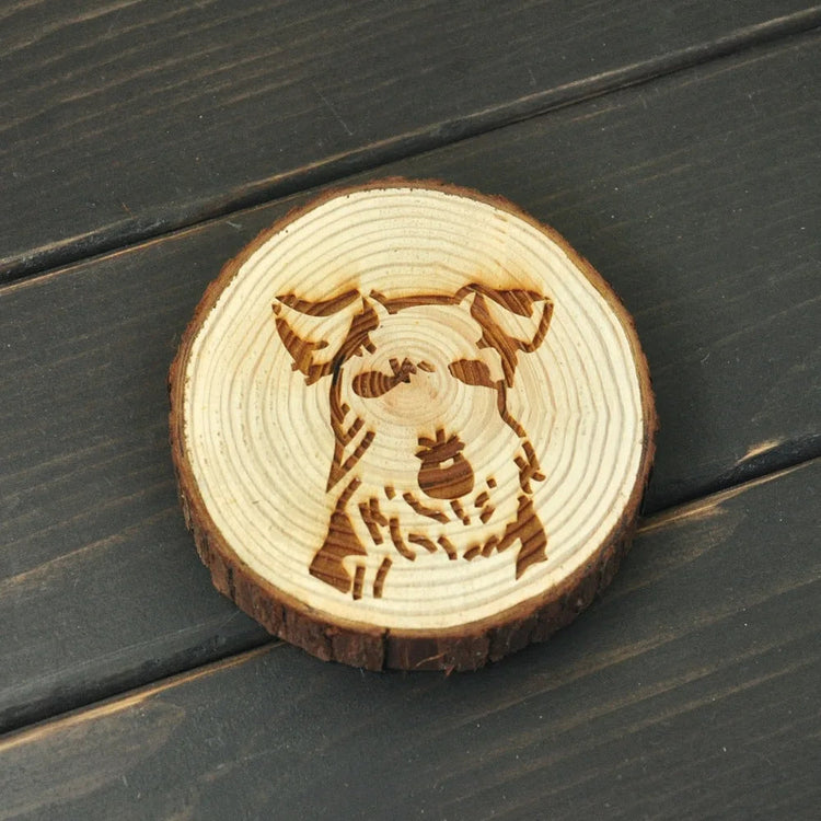 Measuring 3.54" inches or 9 cm in diameter, this beautiful wood-engraved Schnauzer coaster is sure to suit all your coffee table needs!