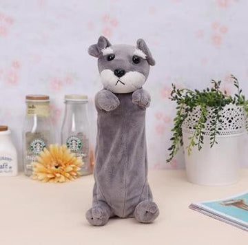 Made of plush, with the cutest Schnauzer detailing. With a quick and easy top zip, take your makeup essentials wherever you go!