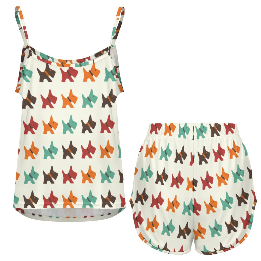 Celebrate your love for Schnauzers with our Vibrant Colorful Schnauzer Women's Cami and Shorts Pajama Set! This delightful set features a playful design of stylized Schnauzers, each adorned in bold shades of teal, orange, red, and brown, bringing joy to your loungewear collection.