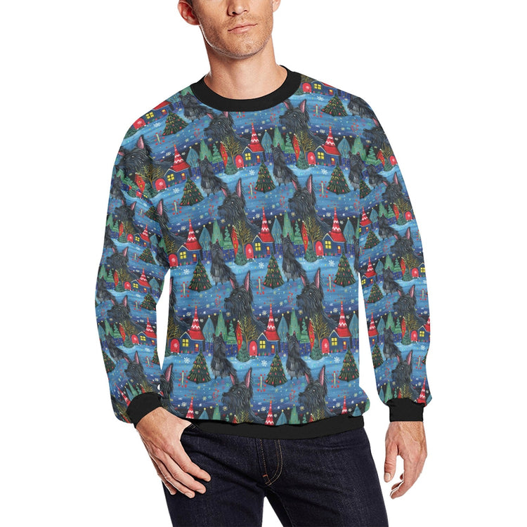 Scottie Dog Christmas Sweatshirt for Men - Starlight and Snowflakes Scottie Dog