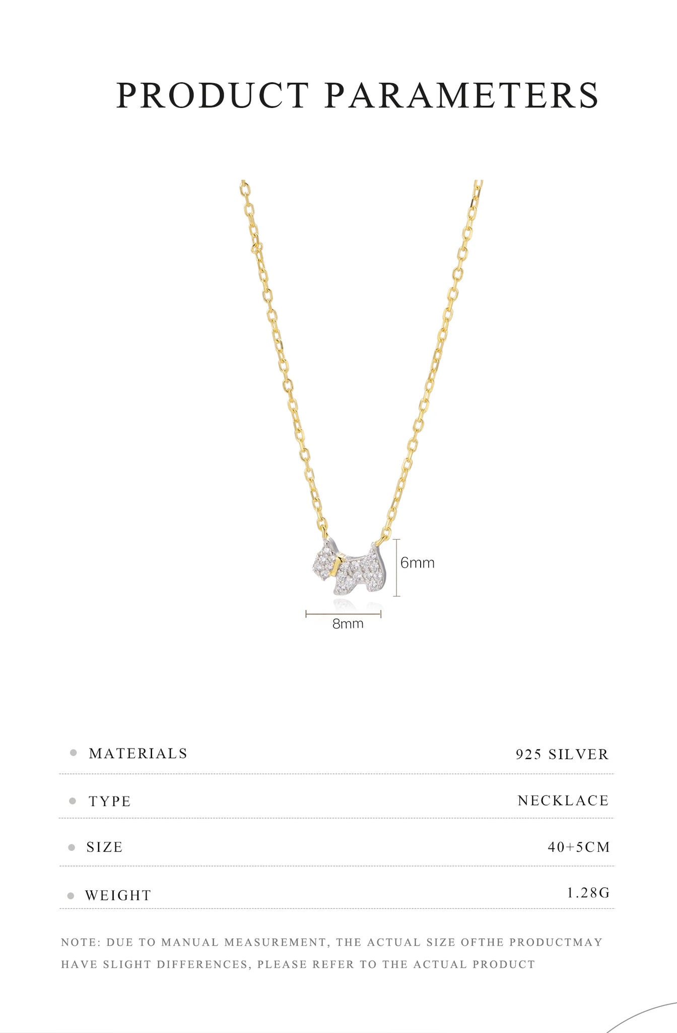 - Necklace chain length: 15.7"– 17.7" adjustable