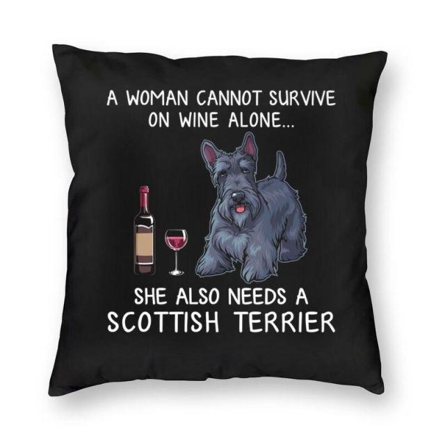 If you're a Scottish Terrier mom who also loves wine - then this most adorable throw pillow is for you!