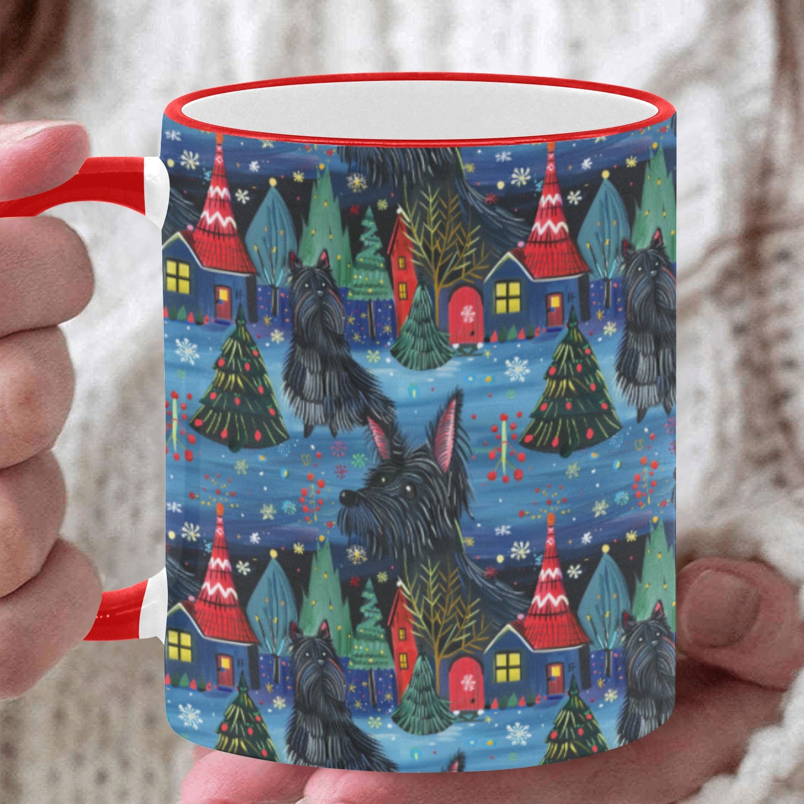 Embrace the magic of the season with our Starlight and Snowflakes Scottie Dog Christmas Coffee Mug, a whimsical tribute to your beloved Scottish Terrier.