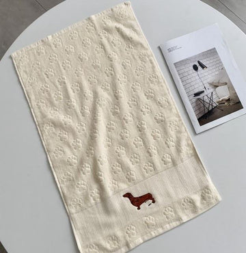 This towel is thick, absorbent, has a cute paw design and an embroidered Beagle. Quality made towel.