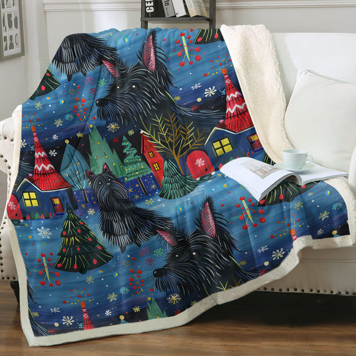 Starlight and Snowflakes Scottie Dog Soft Warm Christmas Blanket