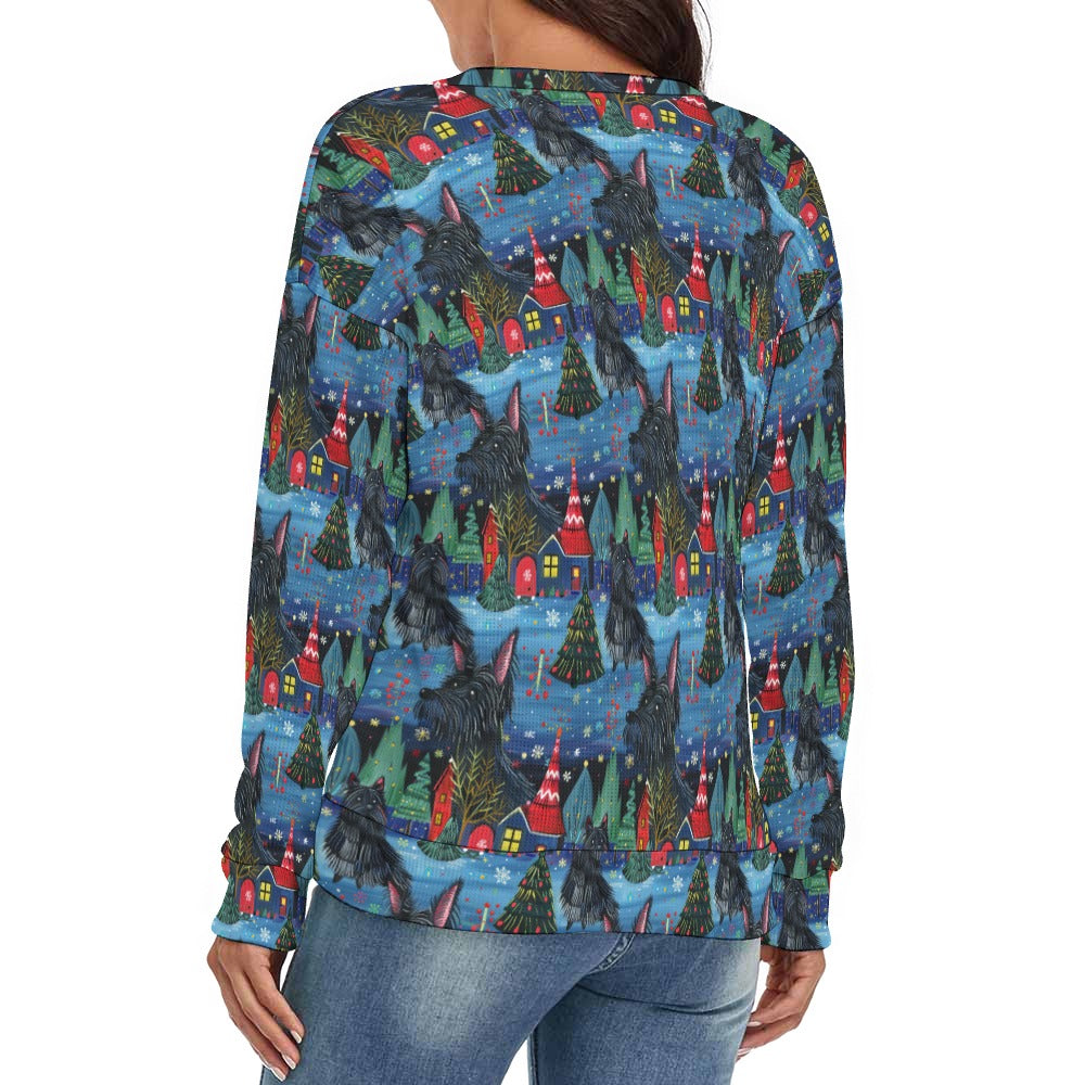 Starlight and Snowflakes Scottie Dog Women's V-Neck Christmas Sweater-Apparel-Apparel,Christmas,Dog Mom Gifts,Scottish Terrier,Sweater,Sweatshirt-1