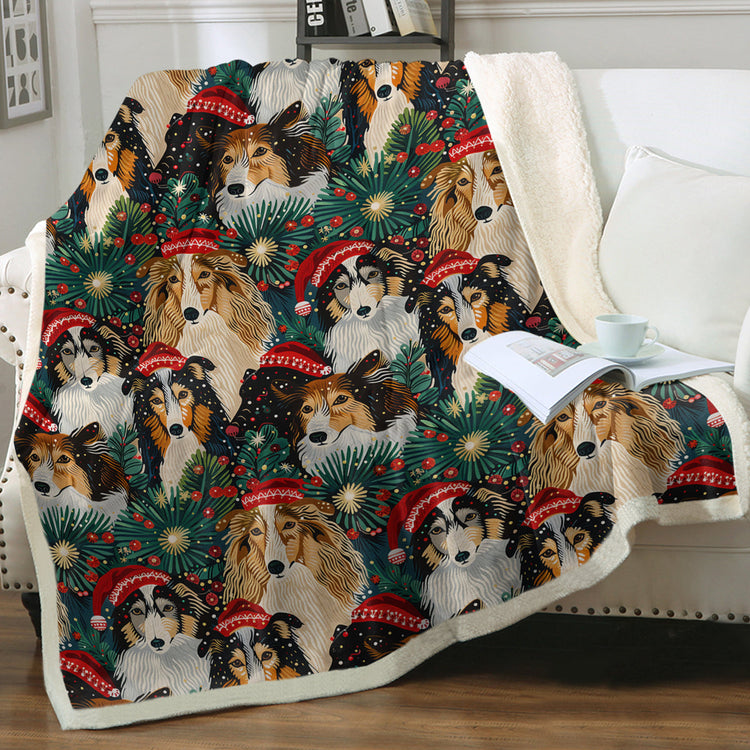 Shelties / Collies Christmas Blanket - Festive Flock Shelties / Collies Christmas Gathering - Sherpa Fleece