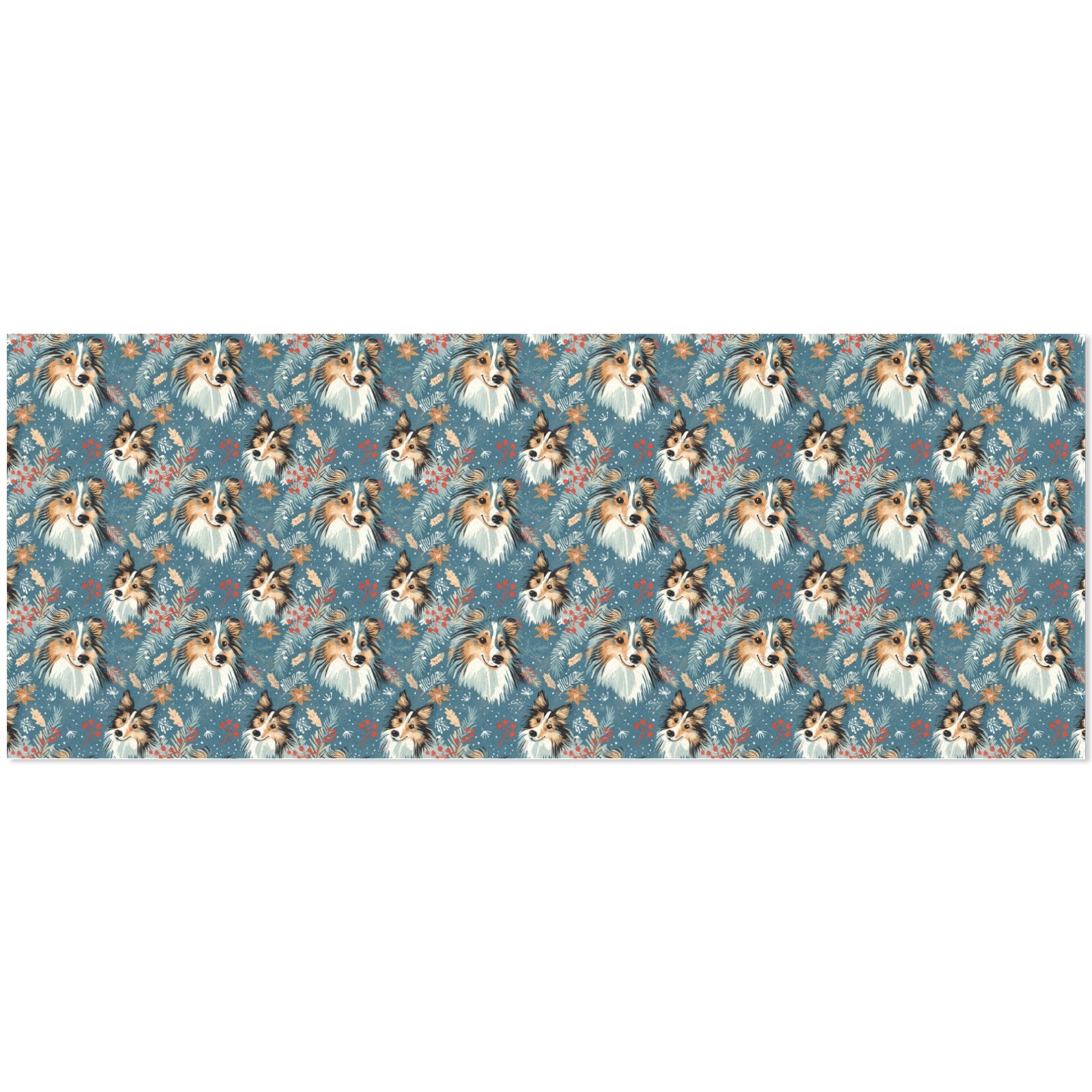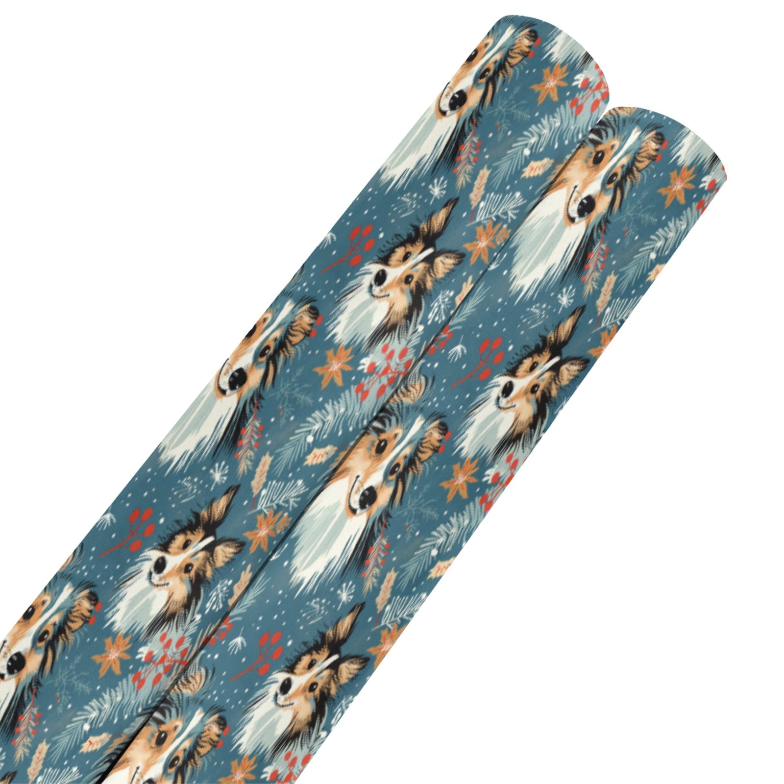 Each roll showcases expressive Shelties, their playful smiles framed by a flurry of snowflakes against a cool blue backdrop. The vibrant artwork captures the essence of winter, evoking memories of brisk walks with your loyal companions.