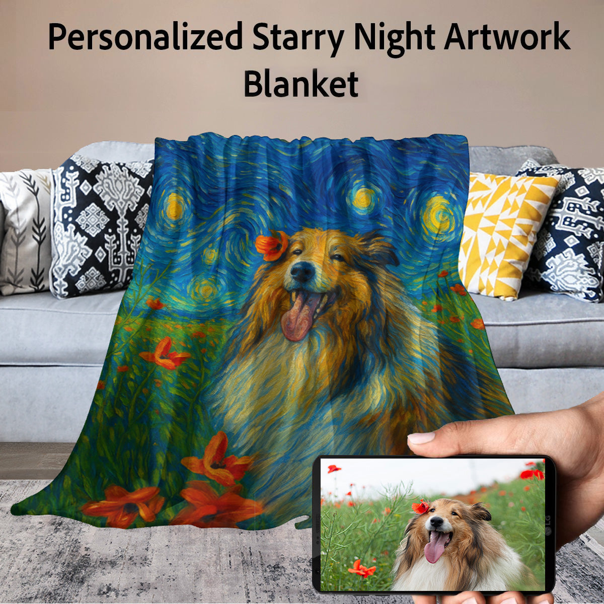 Personalized Starry Night Artwork Custom Sheltie Blanket-Blanket-Blankets,Dog Dad Gifts,Dog Memorial Gifts,Dog Mom Gifts,Home Decor,Personalize Artwork,Rough Collie,Shetland Sheepdog-1