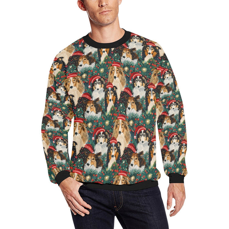 Shelties Christmas Sweatshirt for Men - Festive Flock Shelties' Christmas Gathering