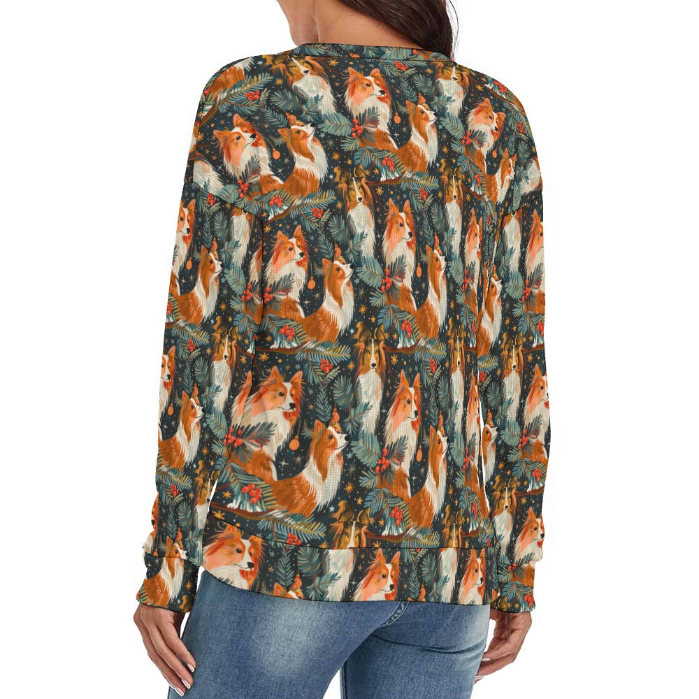 Festive Starlight Shelties Women's V-Neck Christmas Sweater-Apparel-Apparel,Christmas,Dog Mom Gifts,Rough Collie,Shetland Sheepdog,Sweater,Sweatshirt-1