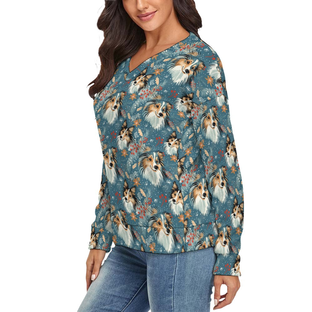Embrace the joy of winter with our Snowflake Shelties Women's V-Neck Christmas Sweater, a perfect blend of warmth and festive spirit.