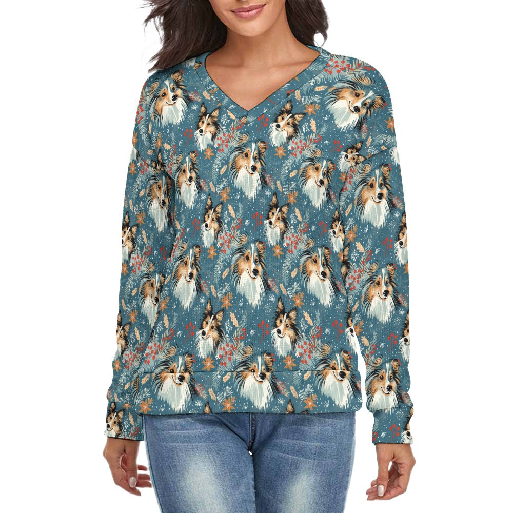 Snowflake Shelties Women's V-Neck Christmas Sweater