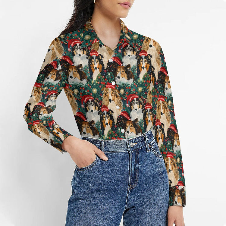 Celebrate the season with the Festive Flock Shelties' Christmas Gathering Women's Shirt, a heartwarming tribute to your beloved Shetland Sheepdogs.