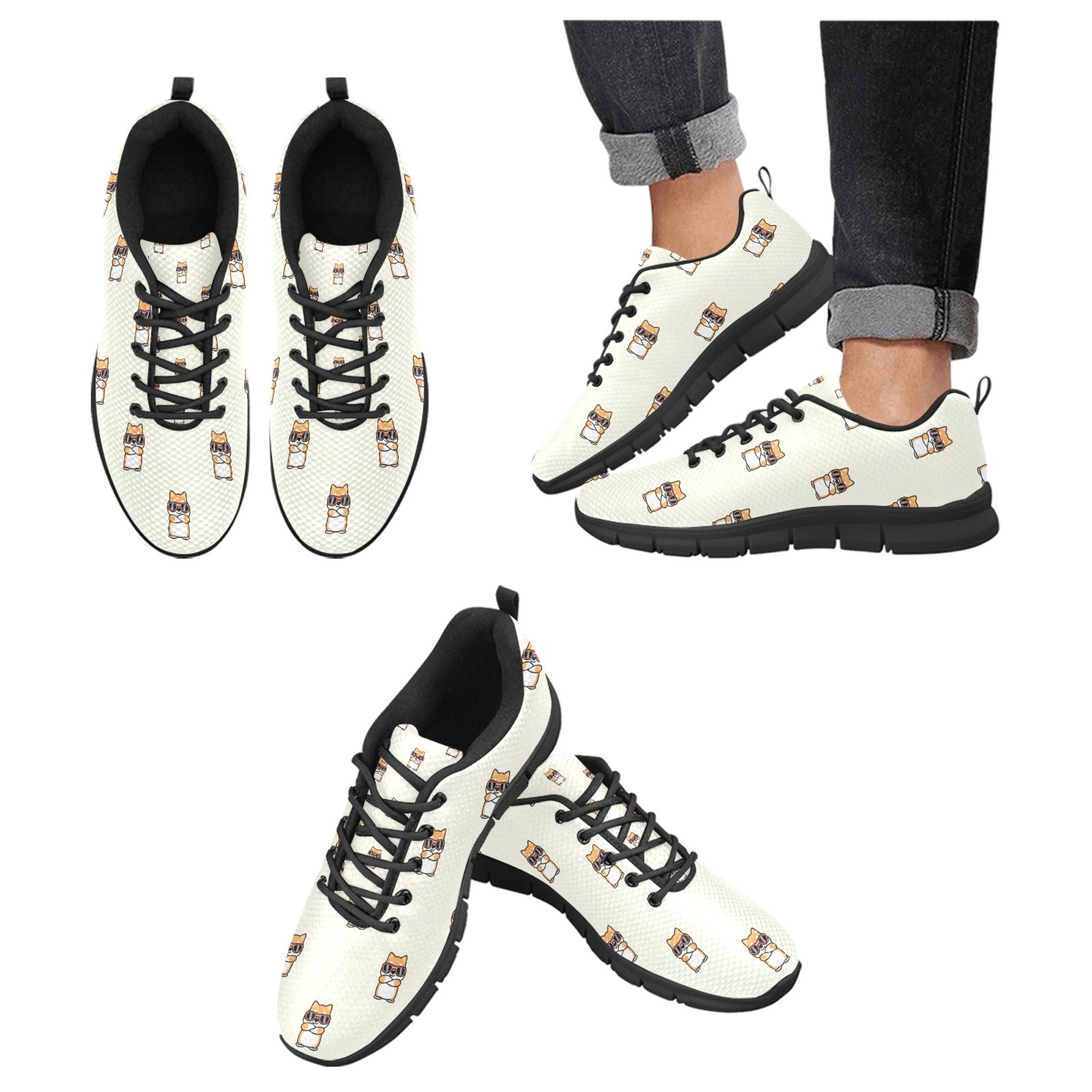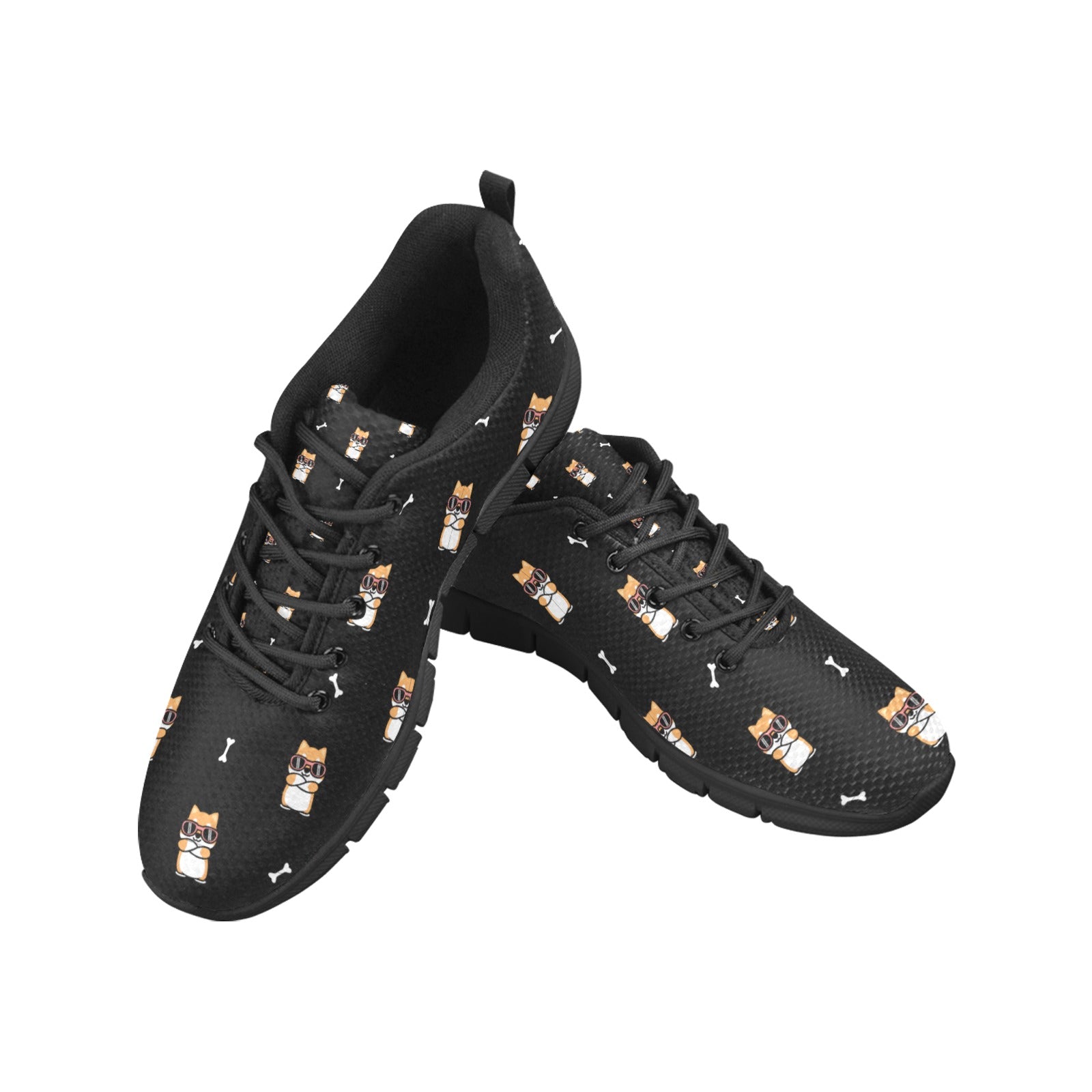 Adorable Shiba Inu cartoons flaunt their cool sunglasses and crossed arms, bringing a playful charm to your daily adventures. With scattered minimalist treats, these sneakers are a delightful expression of your personality.