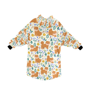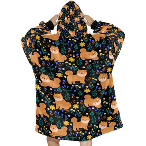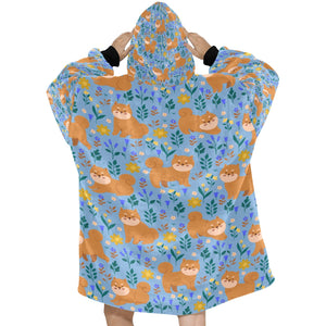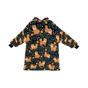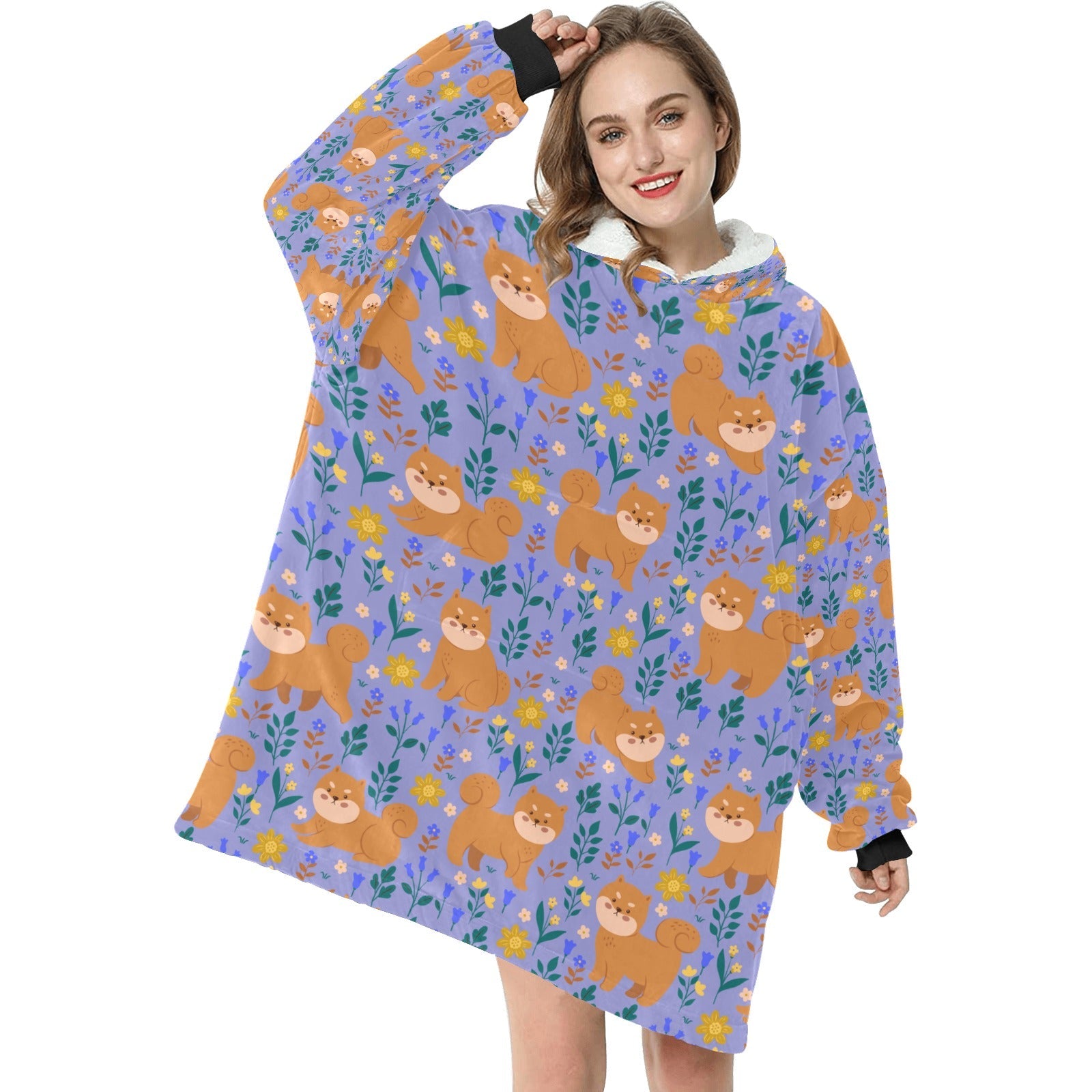 Flower Garden Shiba Inu Blanket Hoodie-CornflowerBlue_1-ONE SIZE-25