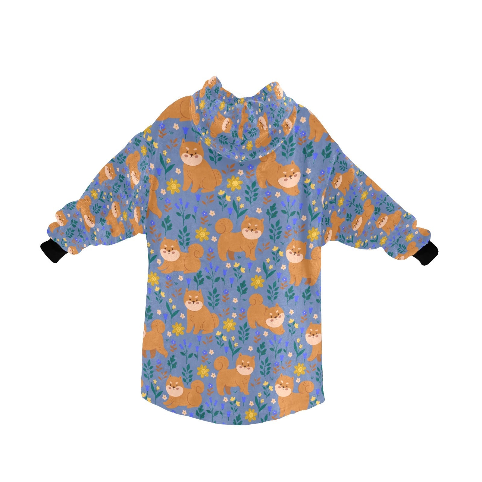 Flower Garden Shiba Inu Blanket Hoodie-CornflowerBlue-ONE SIZE-17