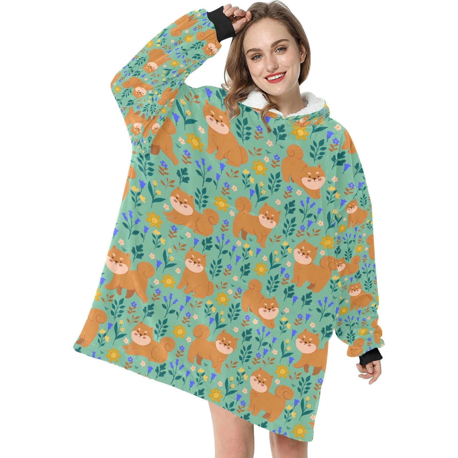 Flower Garden Shiba Inu Blanket Hoodie-31