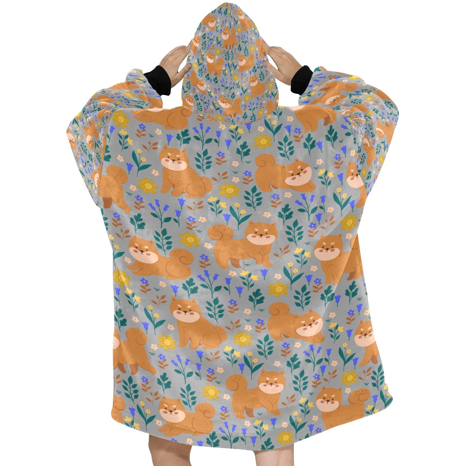 Flower Garden Shiba Inu Blanket Hoodie-DarkGray1-ONE SIZE-29