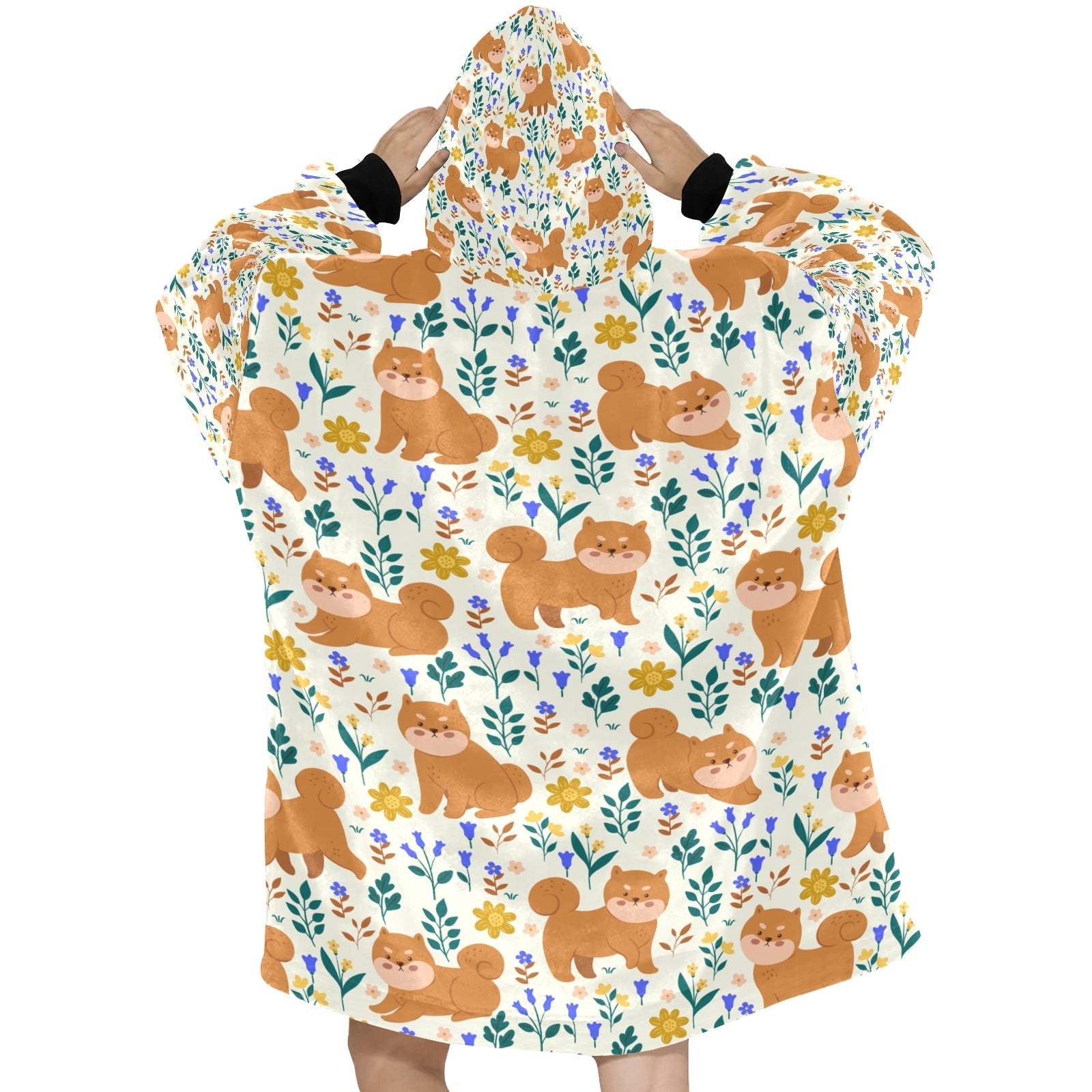 Flower Garden Shiba Inu Blanket Hoodie-7