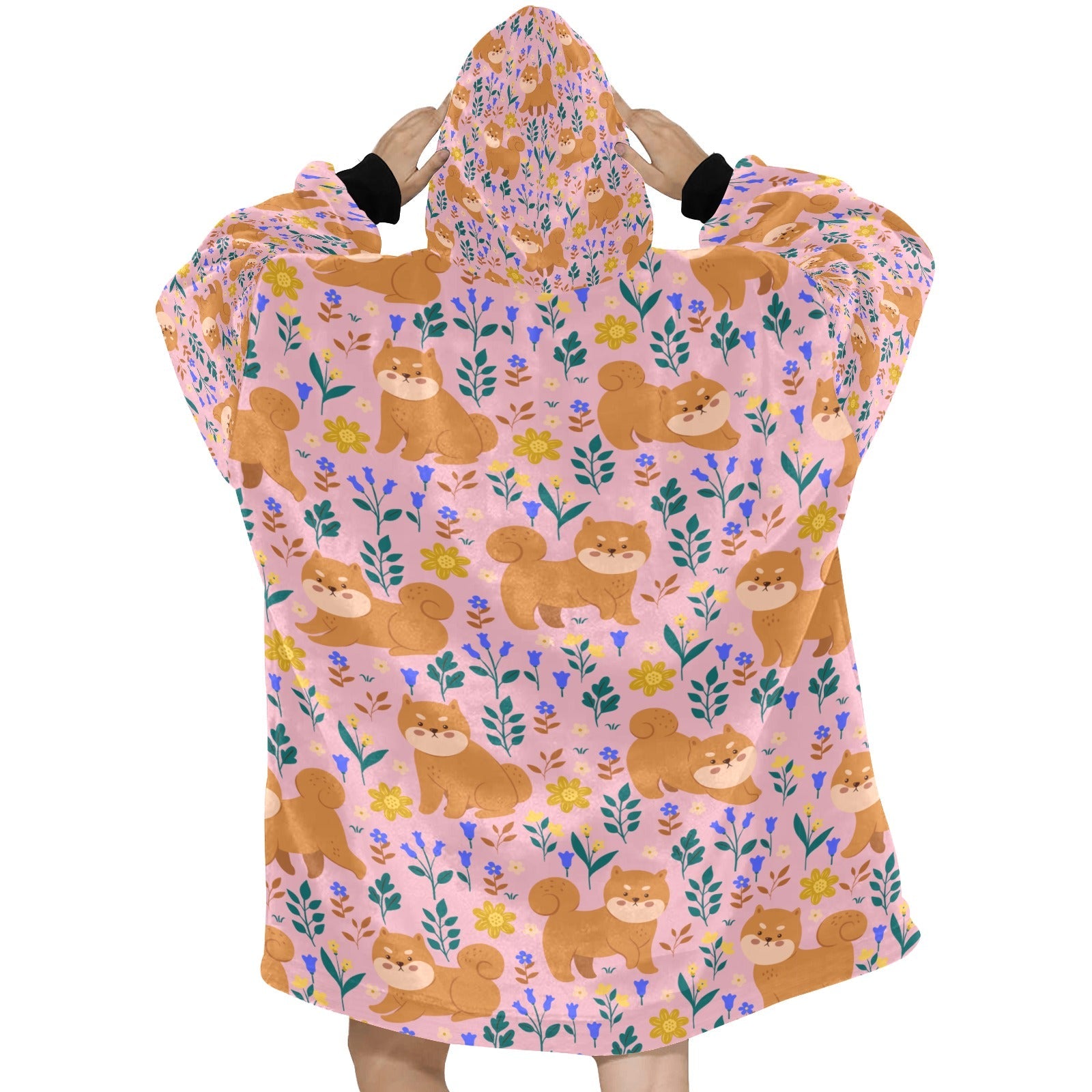 Flower Garden Shiba Inu Blanket Hoodie-Pink-ONE SIZE-5
