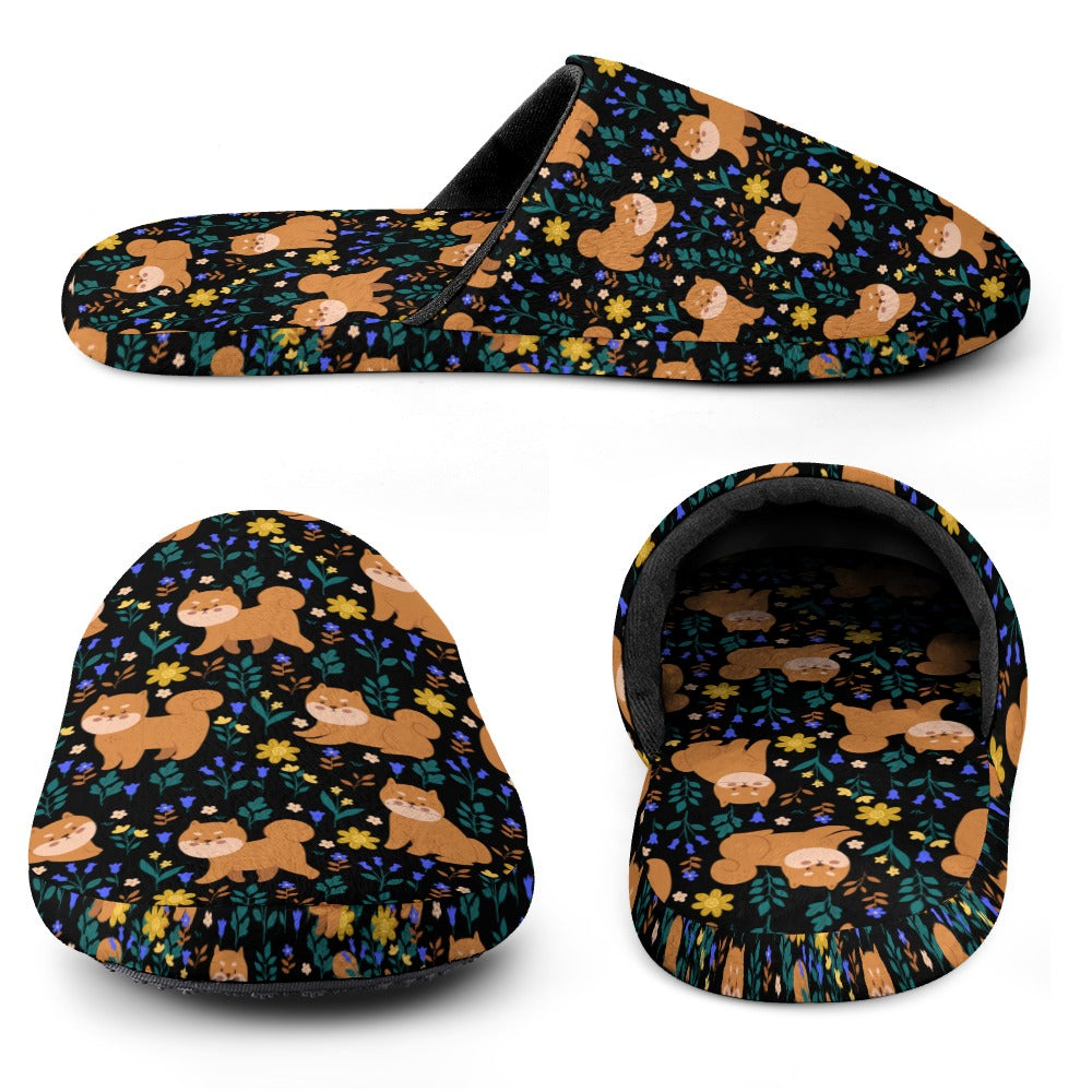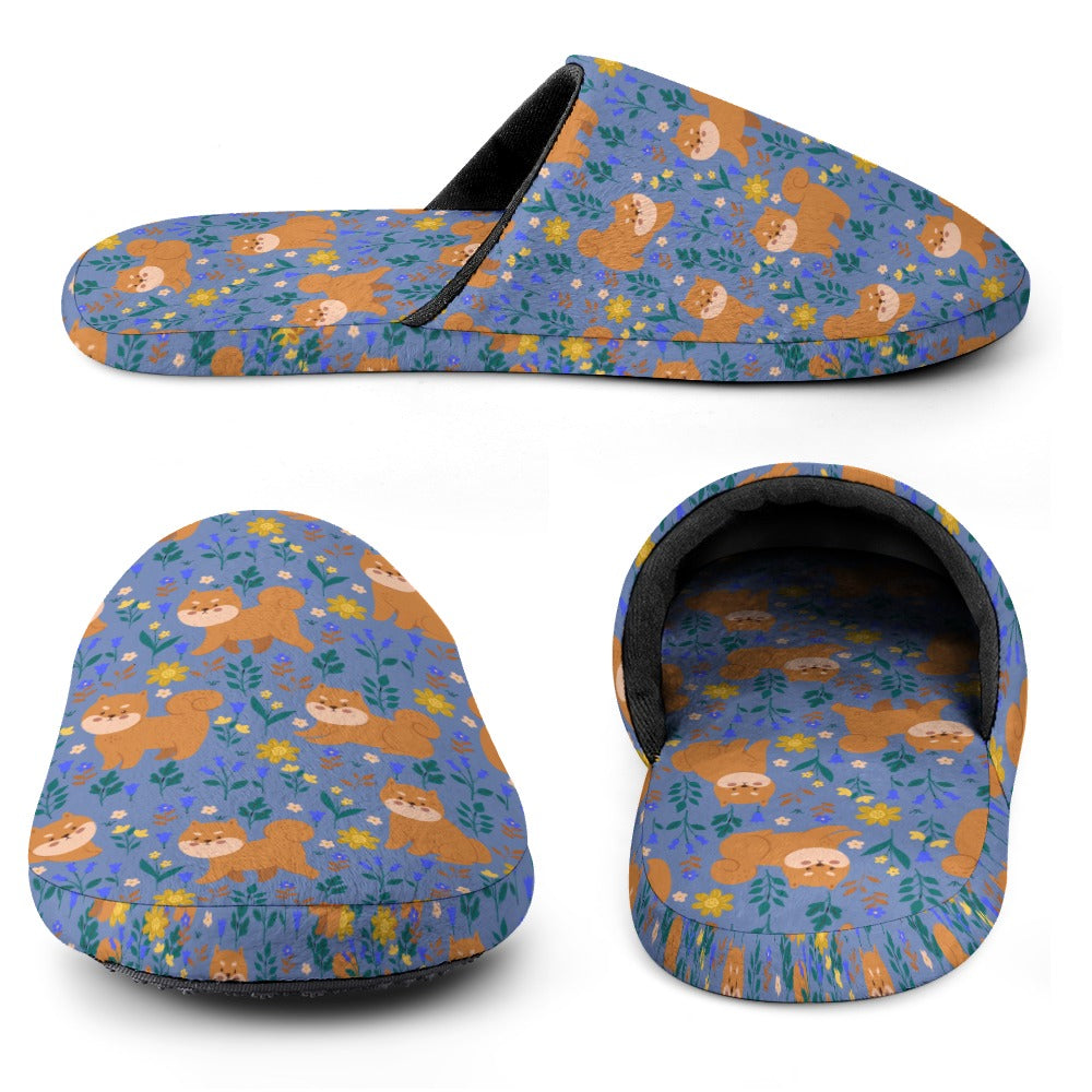 Flower Garden Shiba Inu Women's Cotton Mop Slippers-11