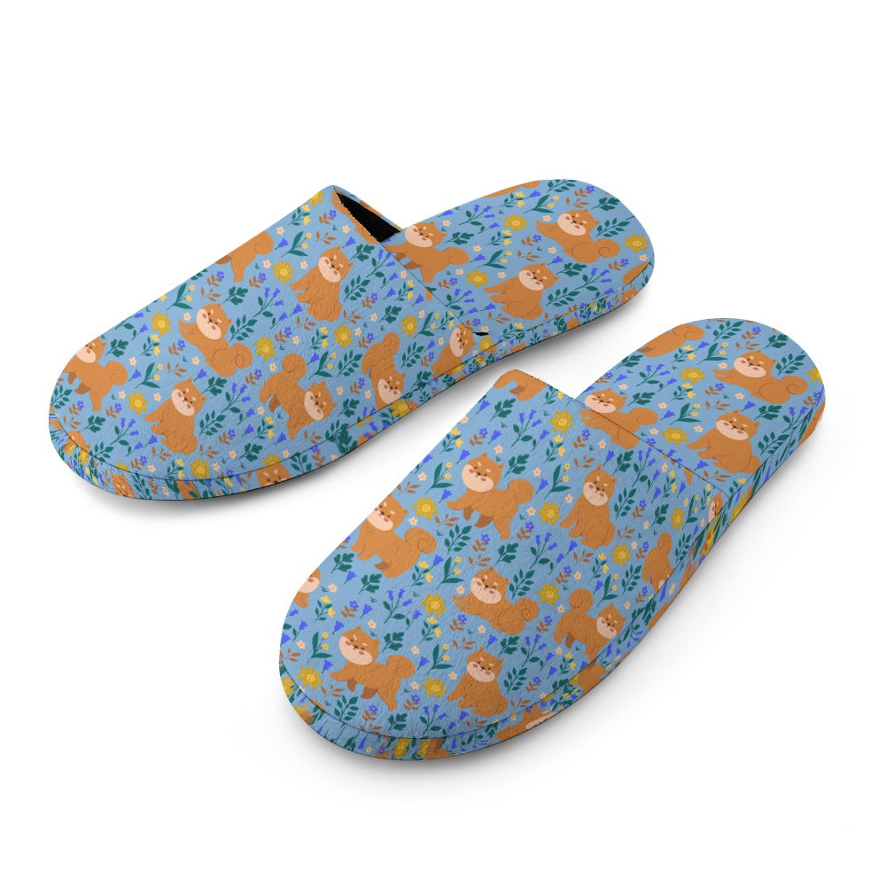 Flower Garden Shiba Inu Women's Cotton Mop Slippers-15