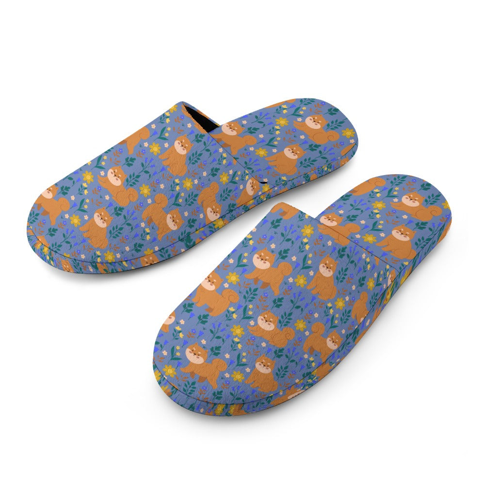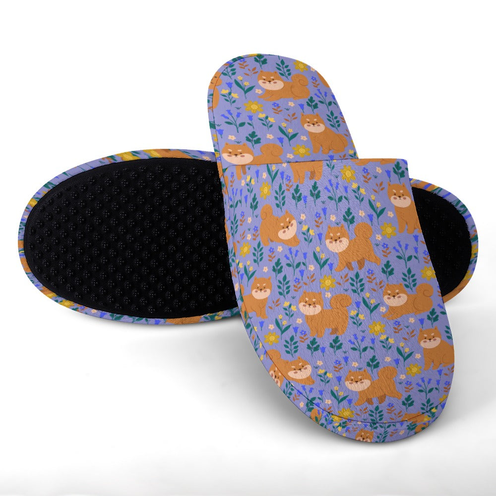 Flower Garden Shiba Inu Women's Cotton Mop Slippers-14