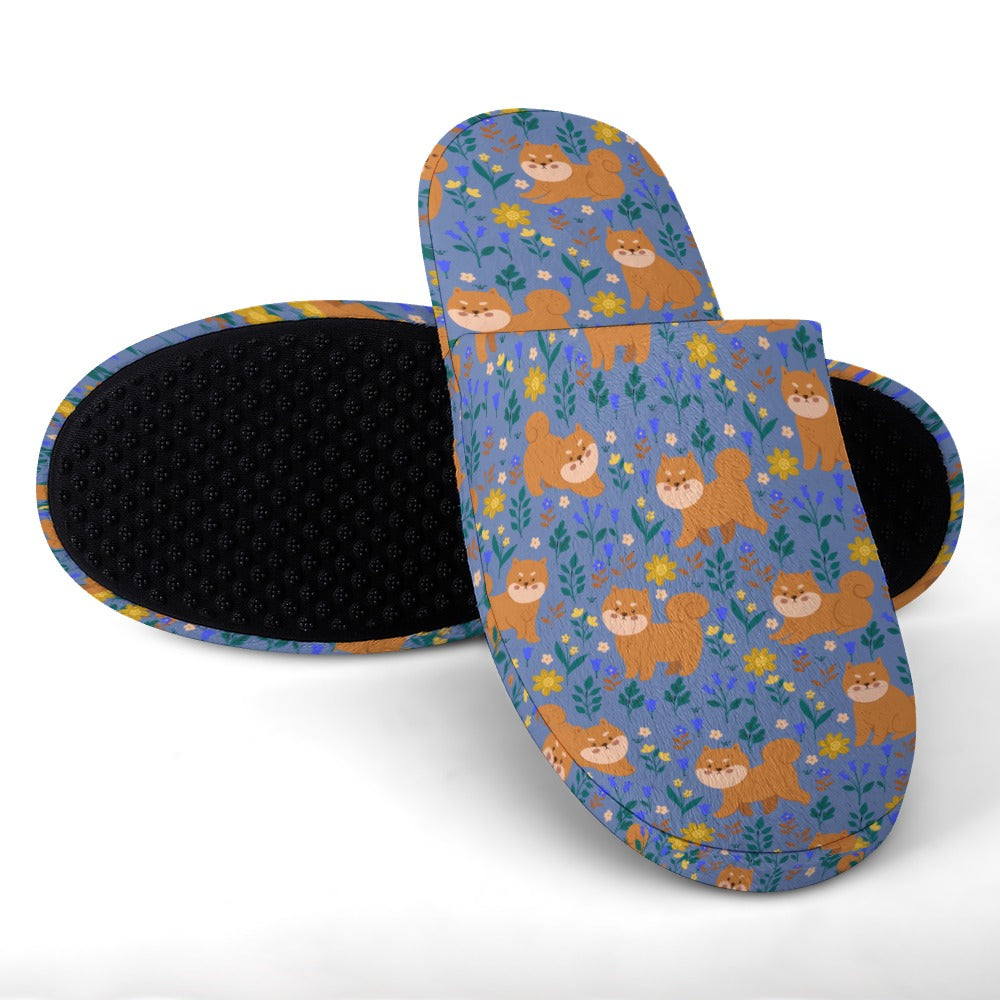 Flower Garden Shiba Inu Women's Cotton Mop Slippers