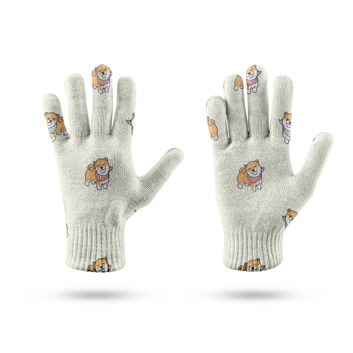 Featuring adorable Shiba Inu pups wearing colorful Scarf, these gloves showcase their playful and cheerful personalities. The curly tails and bright expressions capture the essence of happiness and charm.