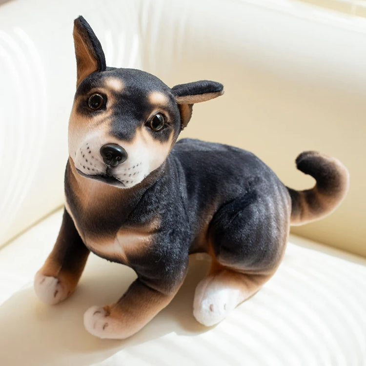 Realistic Sitting Small Black and Tan Shiba Inu Stuffed Animal Plush Toys