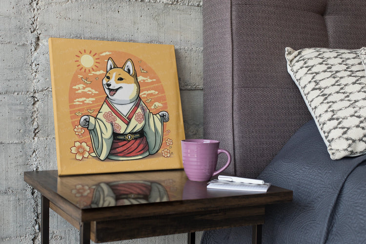 Embrace the cultural charm and spirited essence of the Shiba Inu with our Ukiyo-e Sunrise Shiba Inu Wall Art Poster.