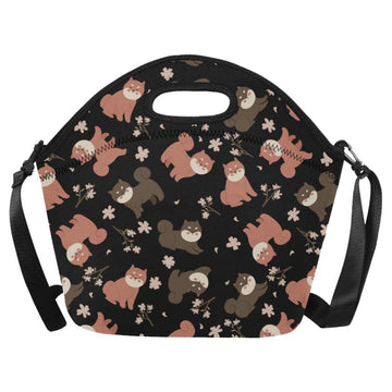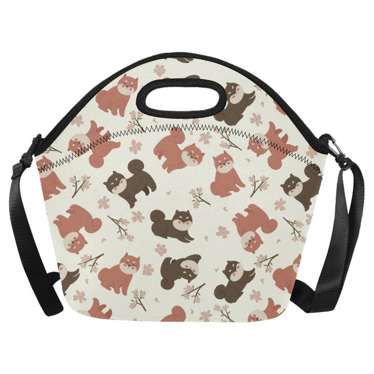 Adorable Shiba Inu with Blossoms Neoprene Lunch Bag-19