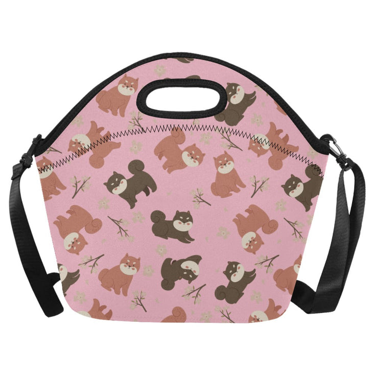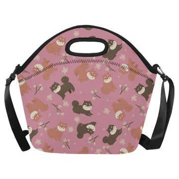 Adorable Shiba Inu with Blossoms Neoprene Lunch Bag-PaleVioletRed-ONESIZE-11