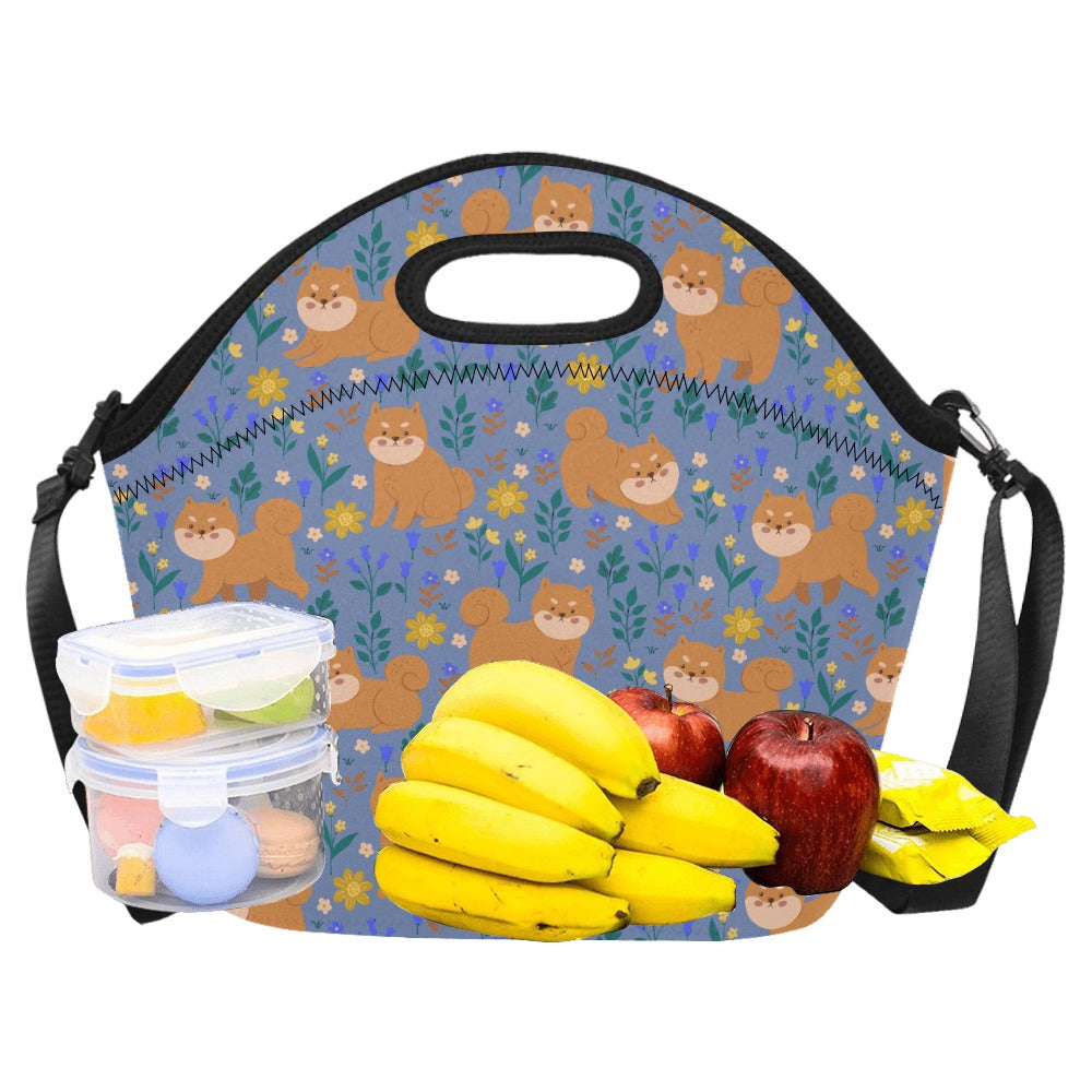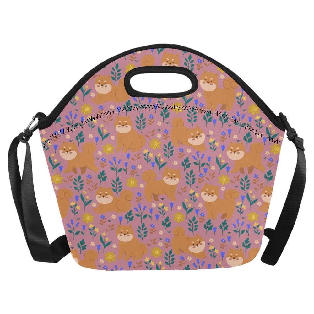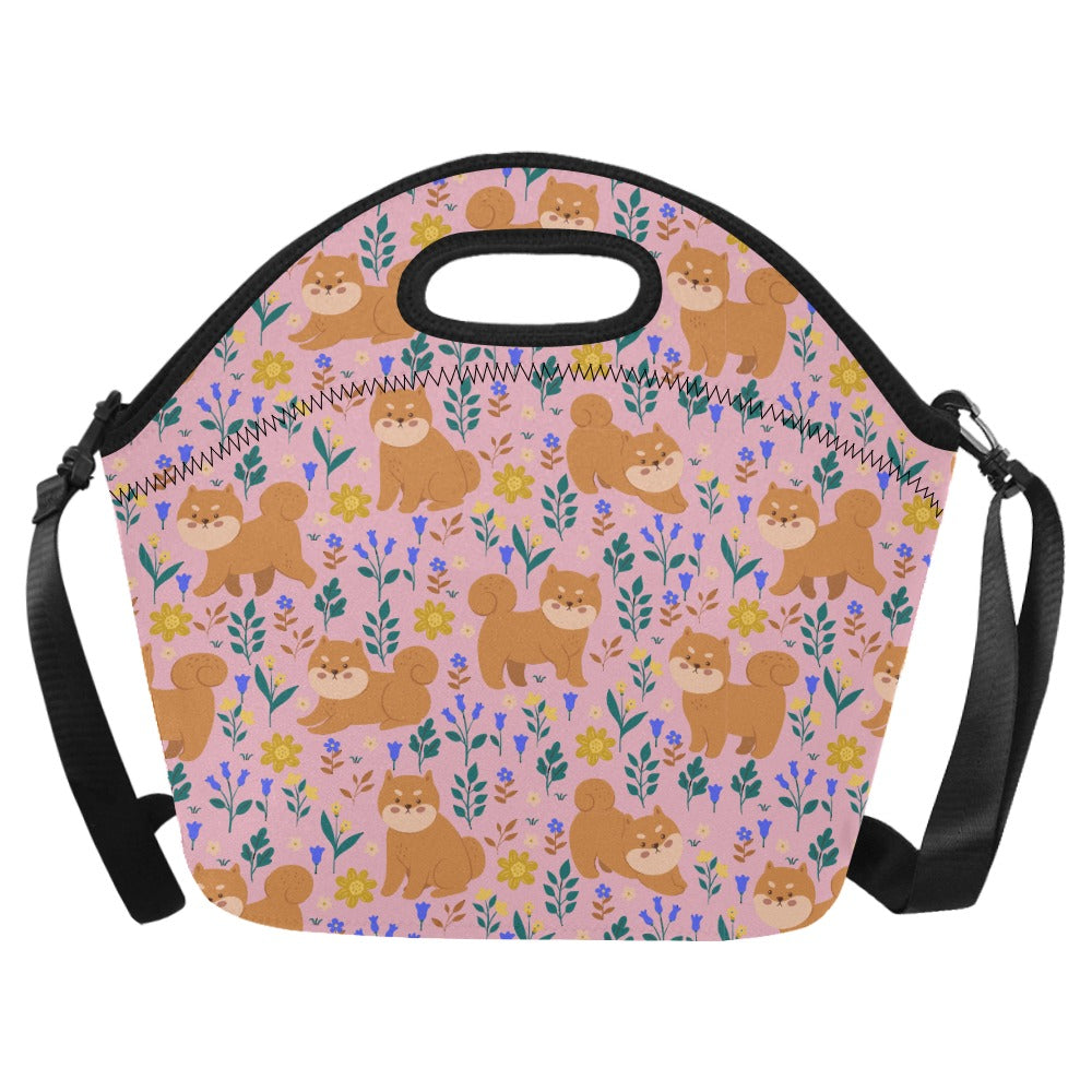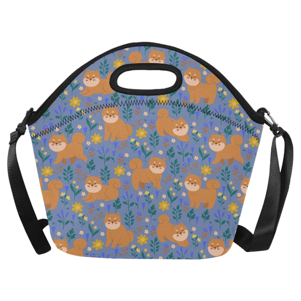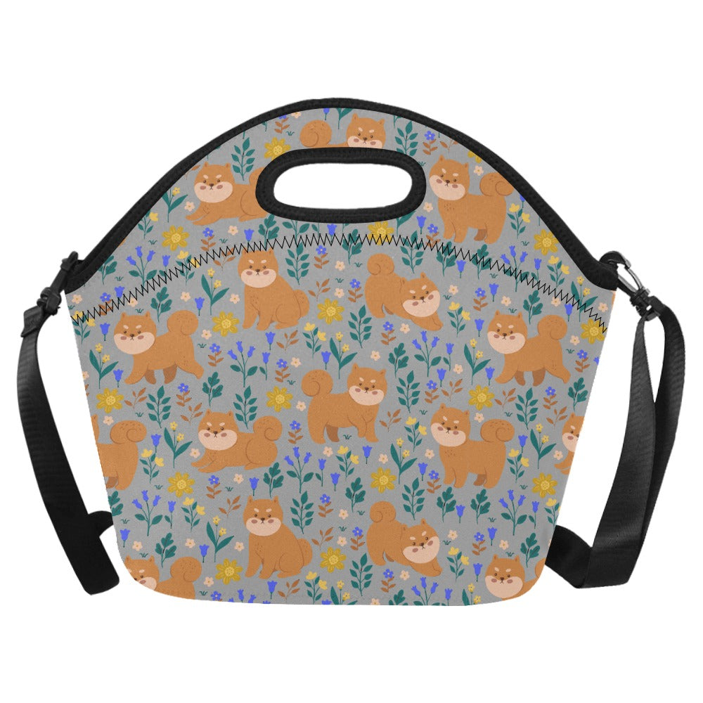 Flower Garden Shiba Inu Neoprene Lunch Bag