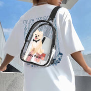 Material: This dog walking sling bag is made from high-quality transparent PVC, featuring comfortable elastic shoulder straps and robust construction for enduring use.