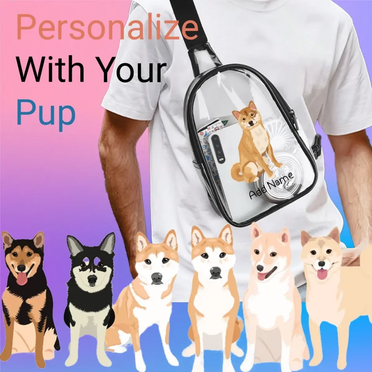 Celebrate your Shiba Inu with a Personalized Shiba Inu Love Unisex Transparent Sling Bag. This trendy accessory is perfect for showcasing your pup's likeness and name, with true-to-breed coat color options.