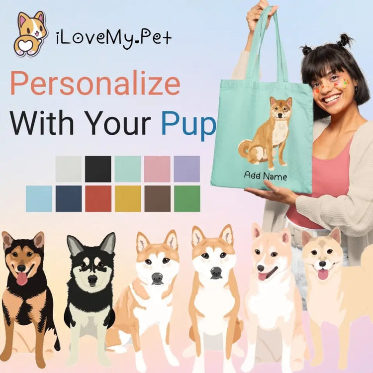 Shiba Inu Tote Bag - Personalized - Pick Coat Color and Add Name - with Zip