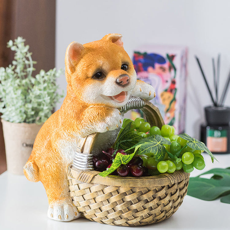 Made of high-quality resin, hand-painted, and featuring the most helpful Shiba Inu holding a straw weave design basket.