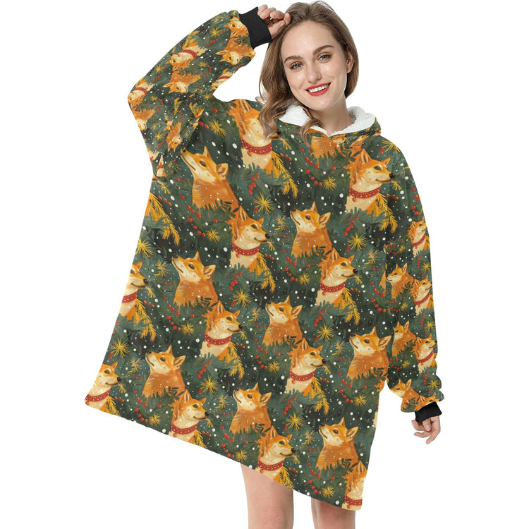Wrap yourself in the warmth of the season with our Christmas Forest Shiba Inus Blanket Hoodie.