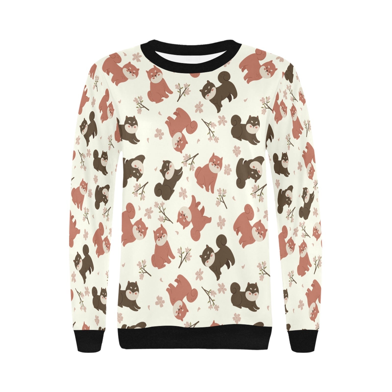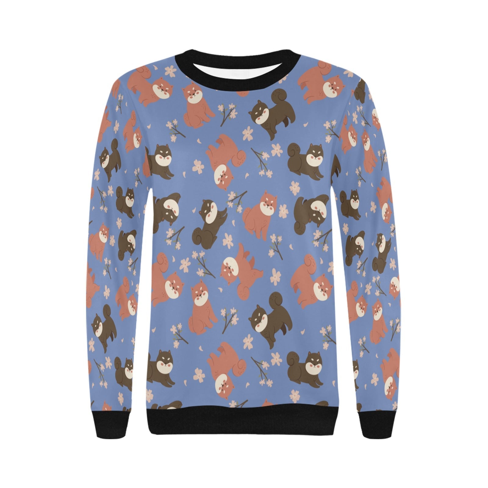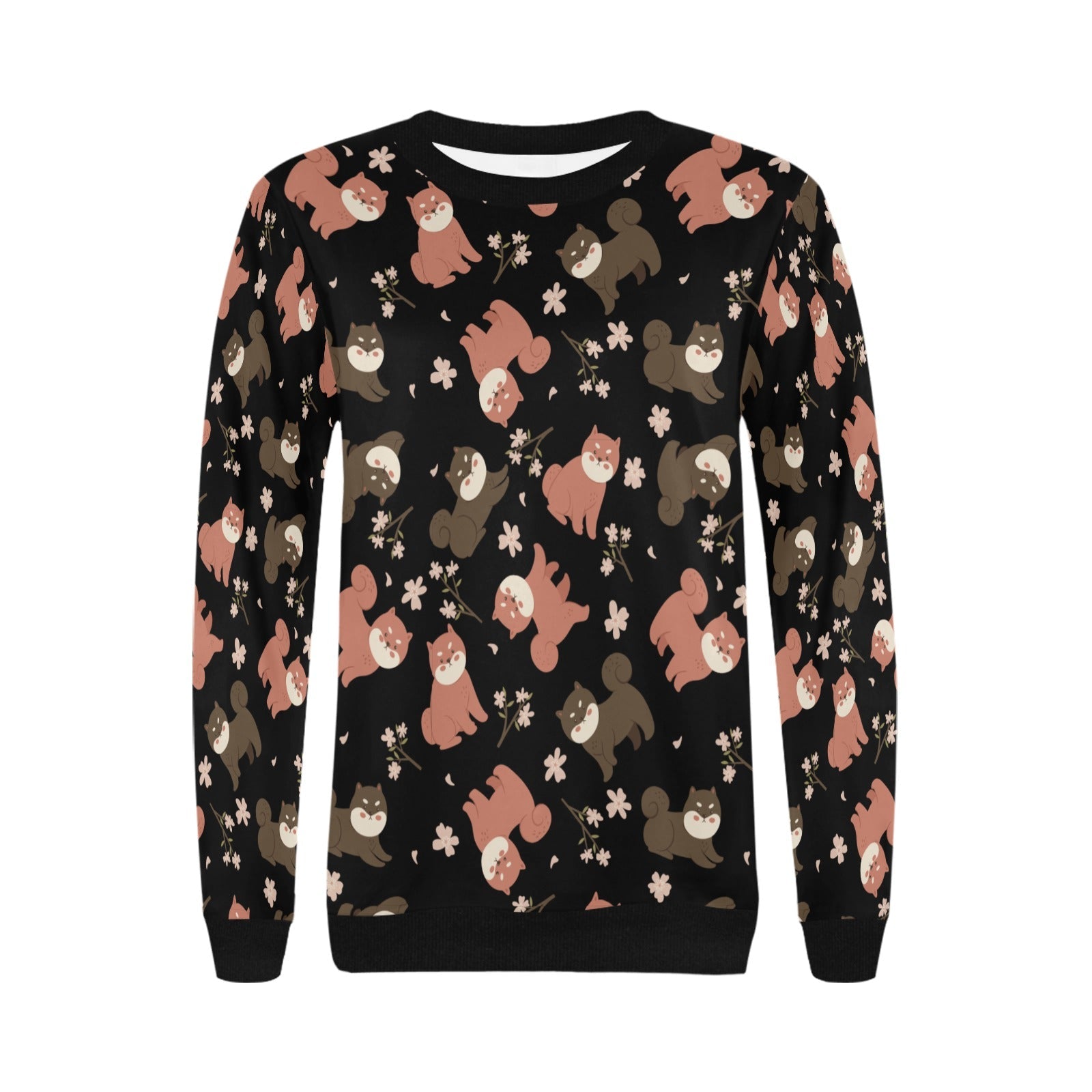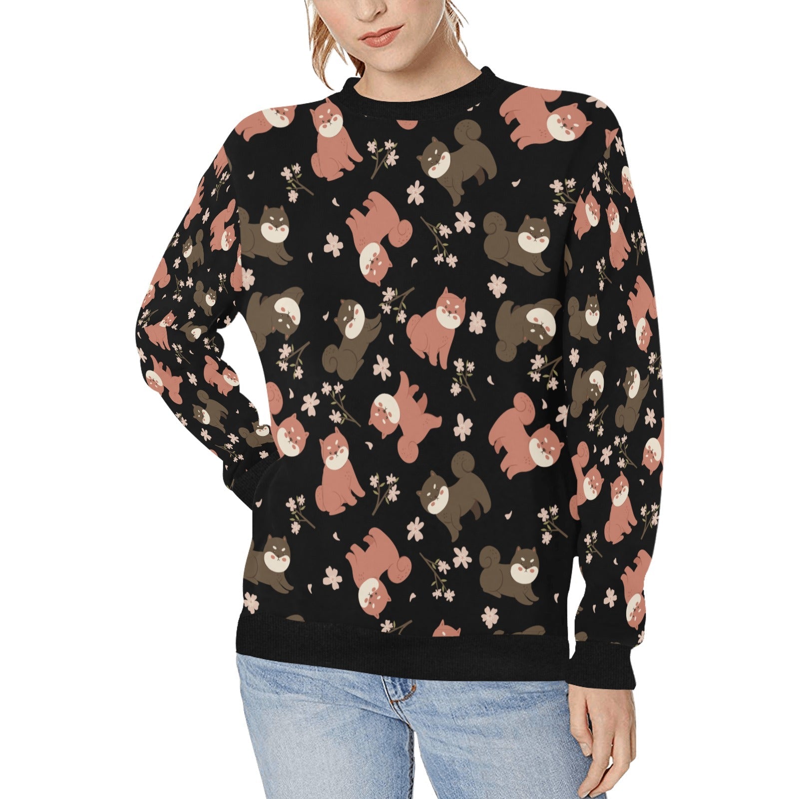 Adorable Shiba Inu with Blossoms Sweatshirt for Women