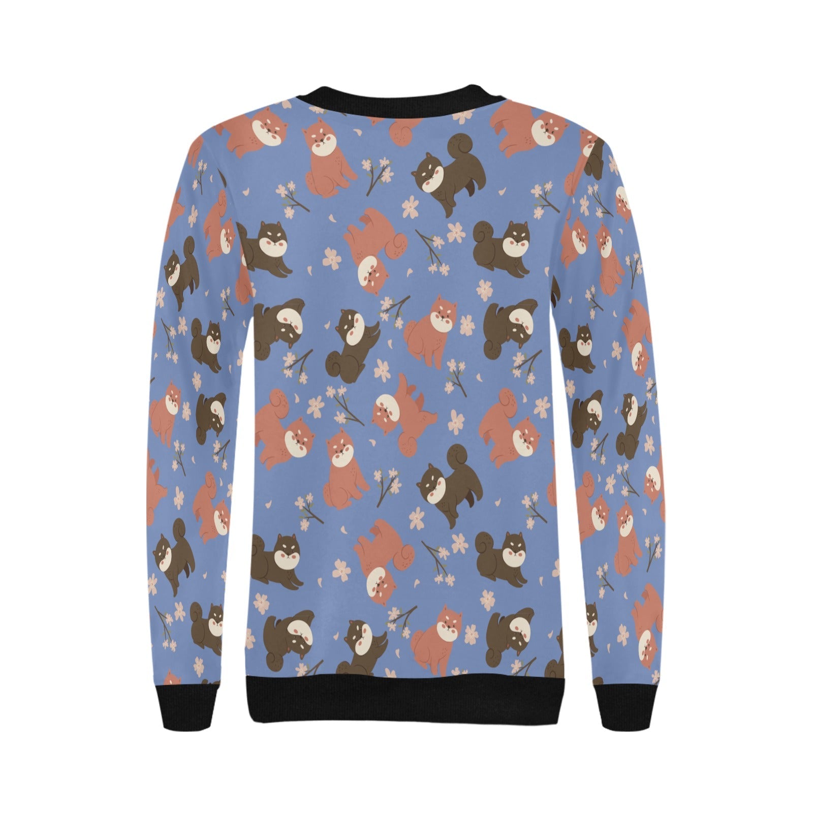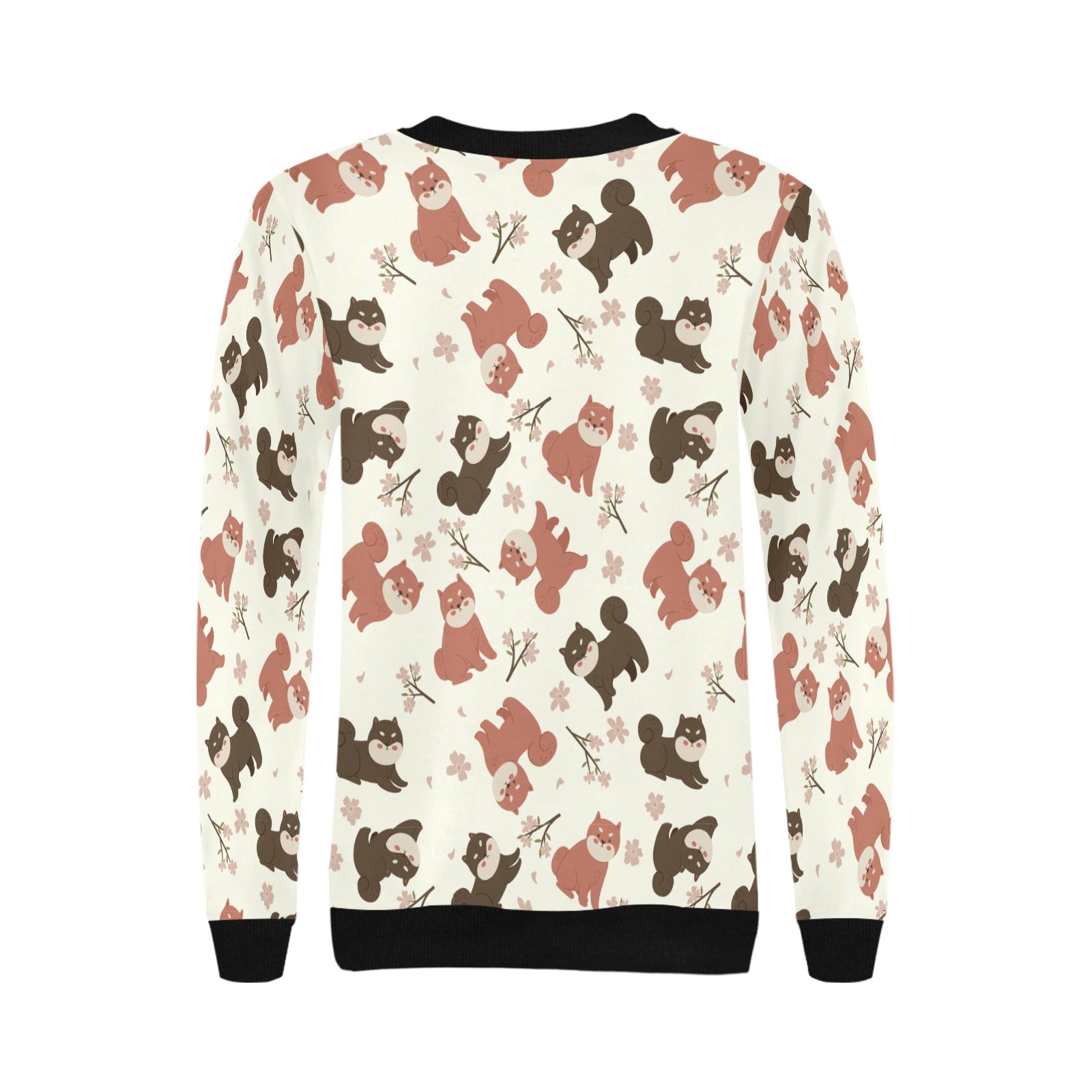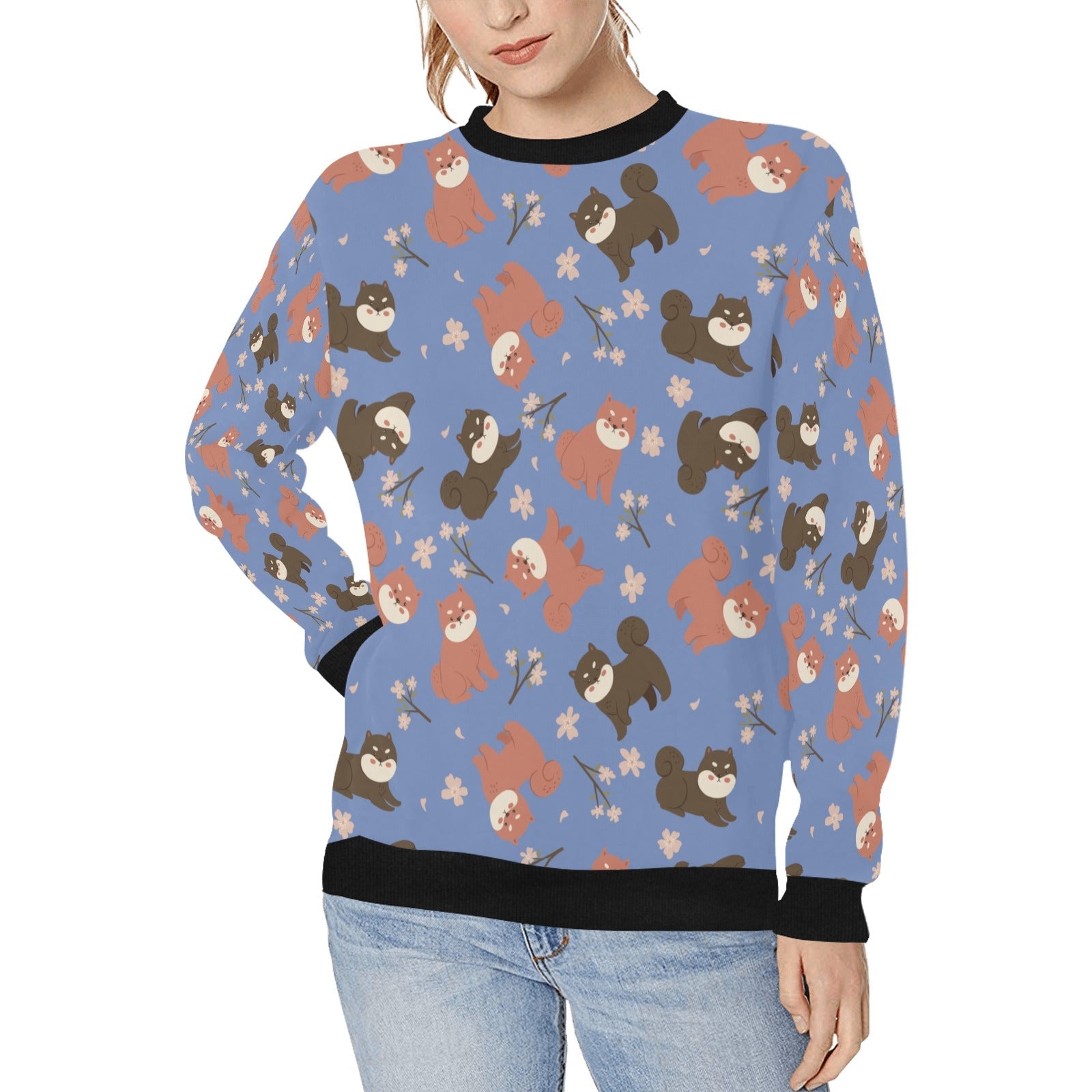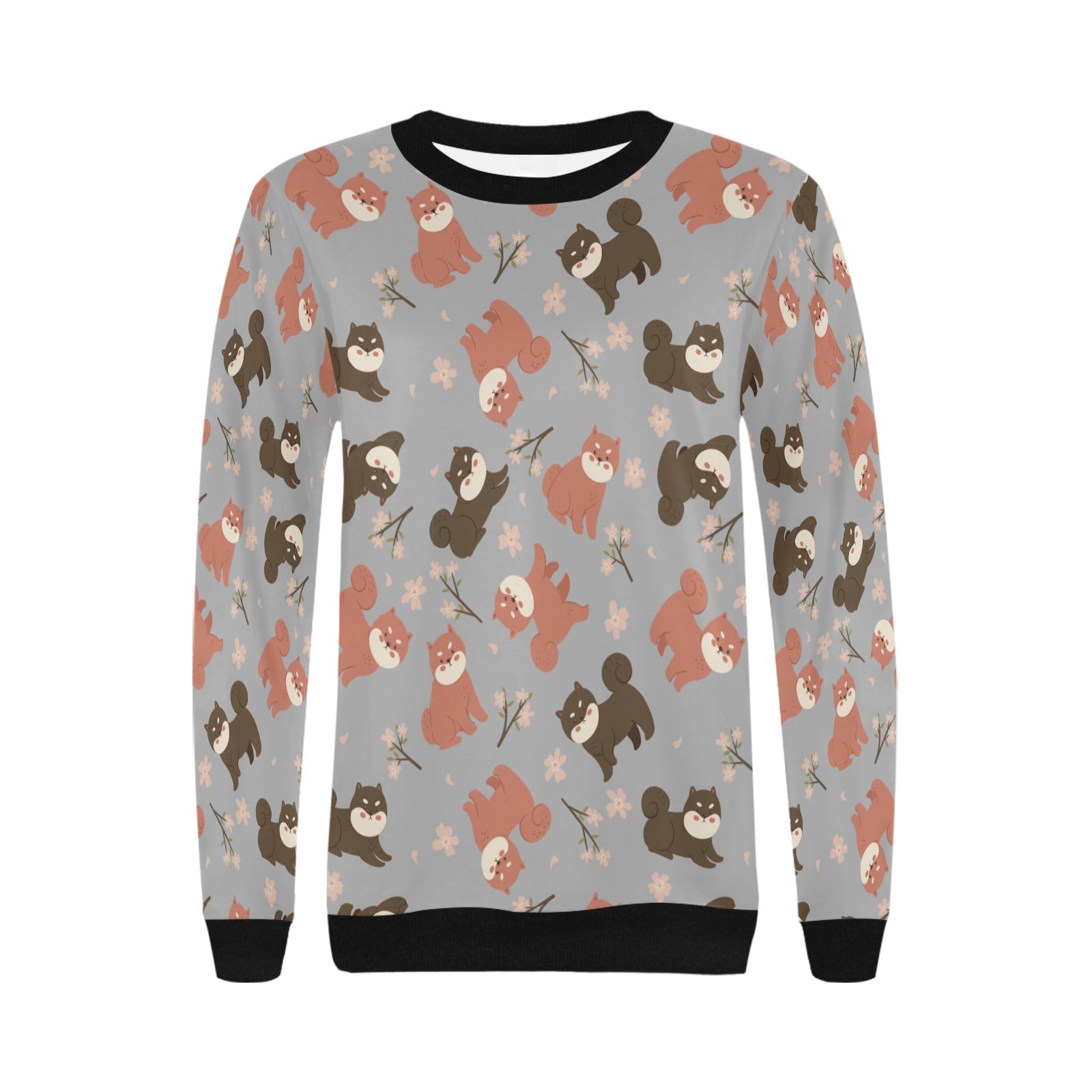 Adorable Shiba Inu with Blossoms Sweatshirt for Women