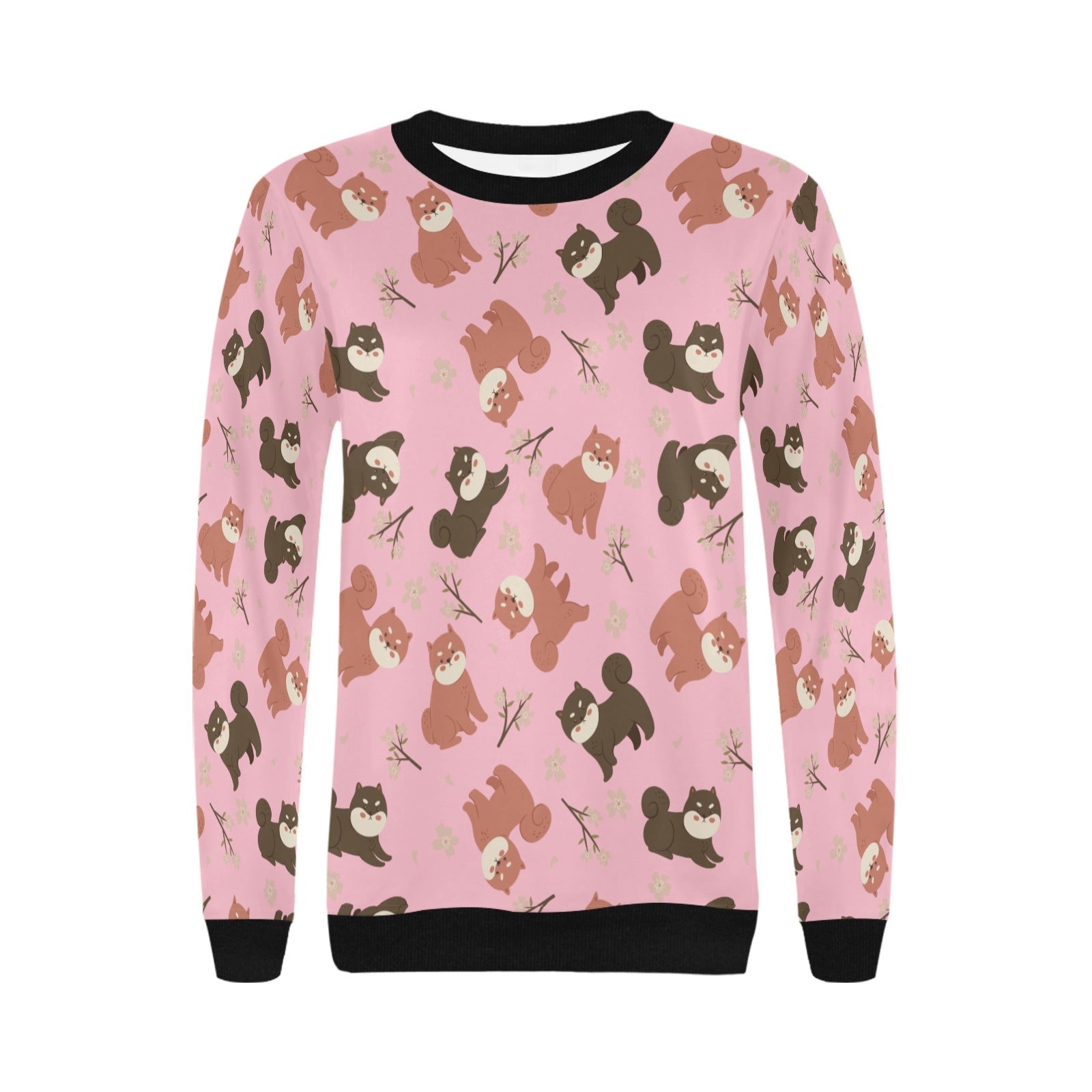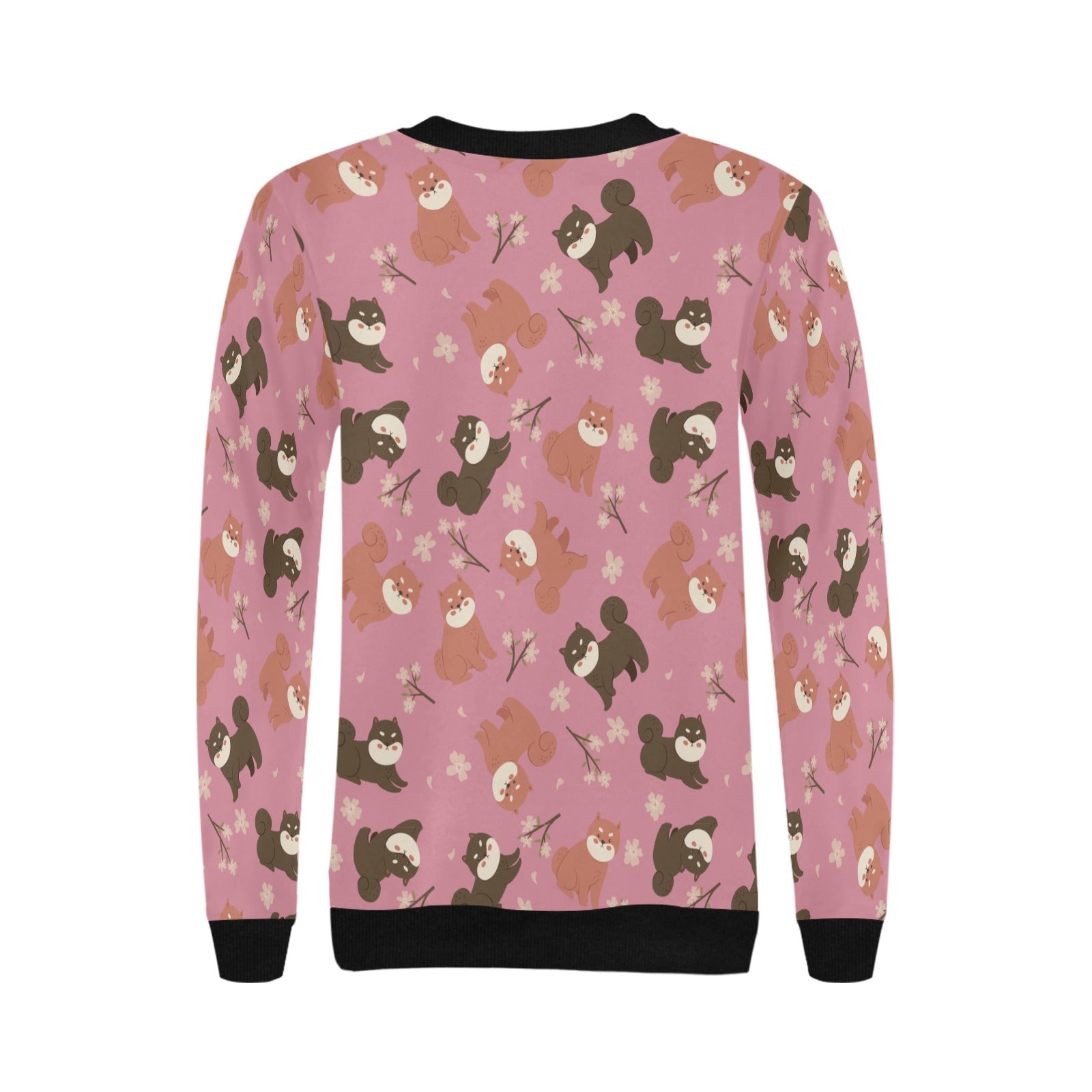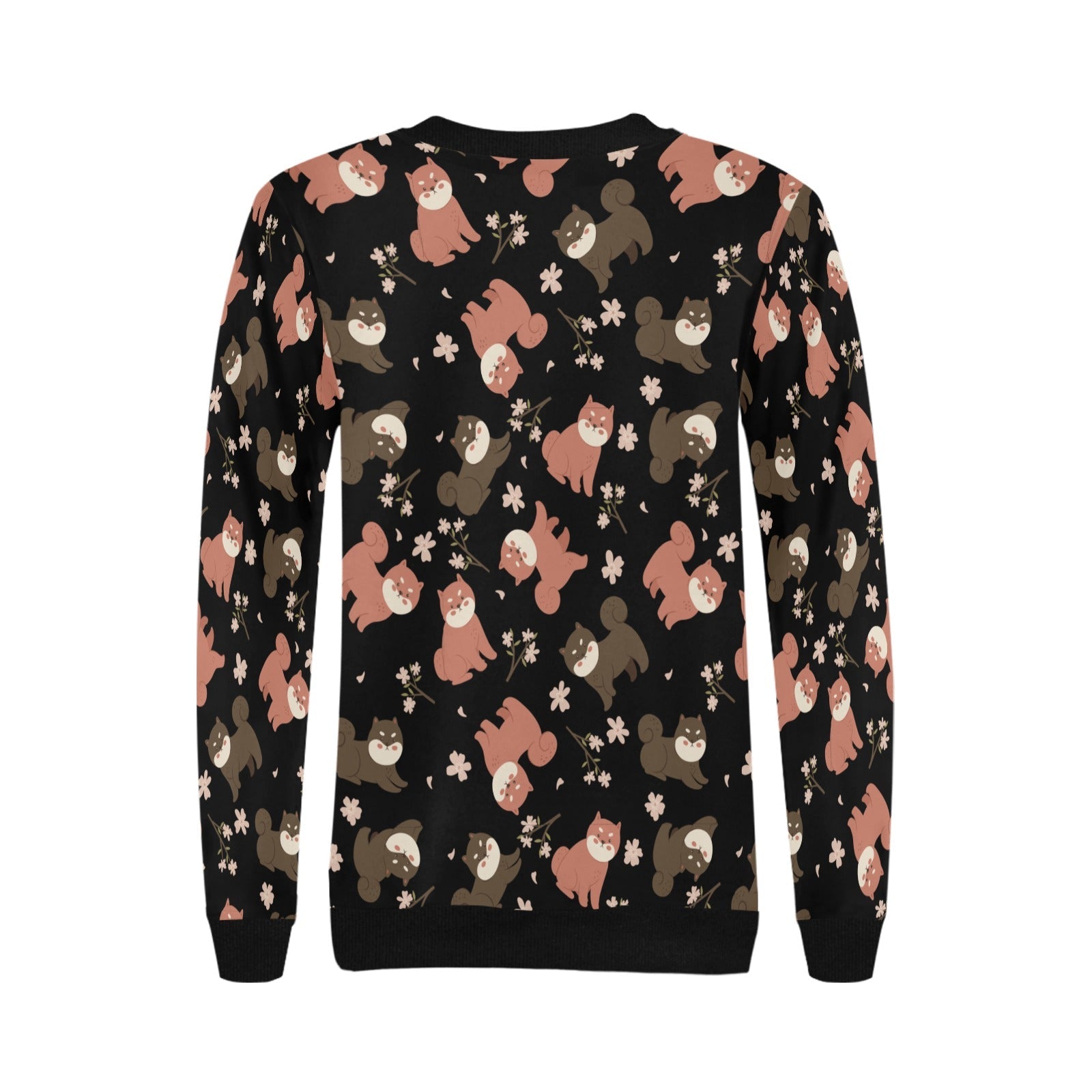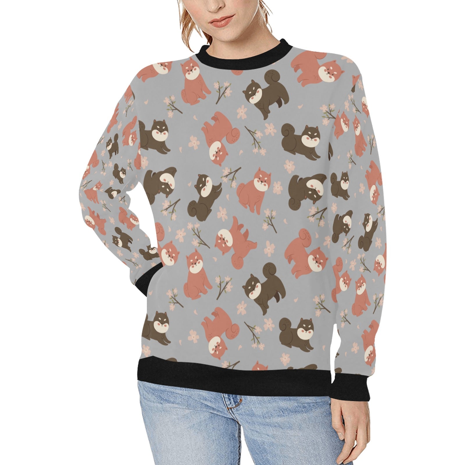 Adorable Shiba Inu with Blossoms Sweatshirt for Women