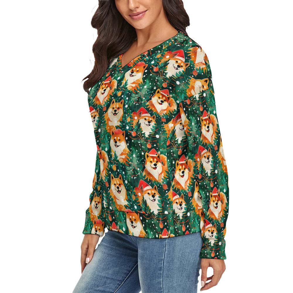 Merry Shiba Merriment Women's V-Neck Christmas Sweater