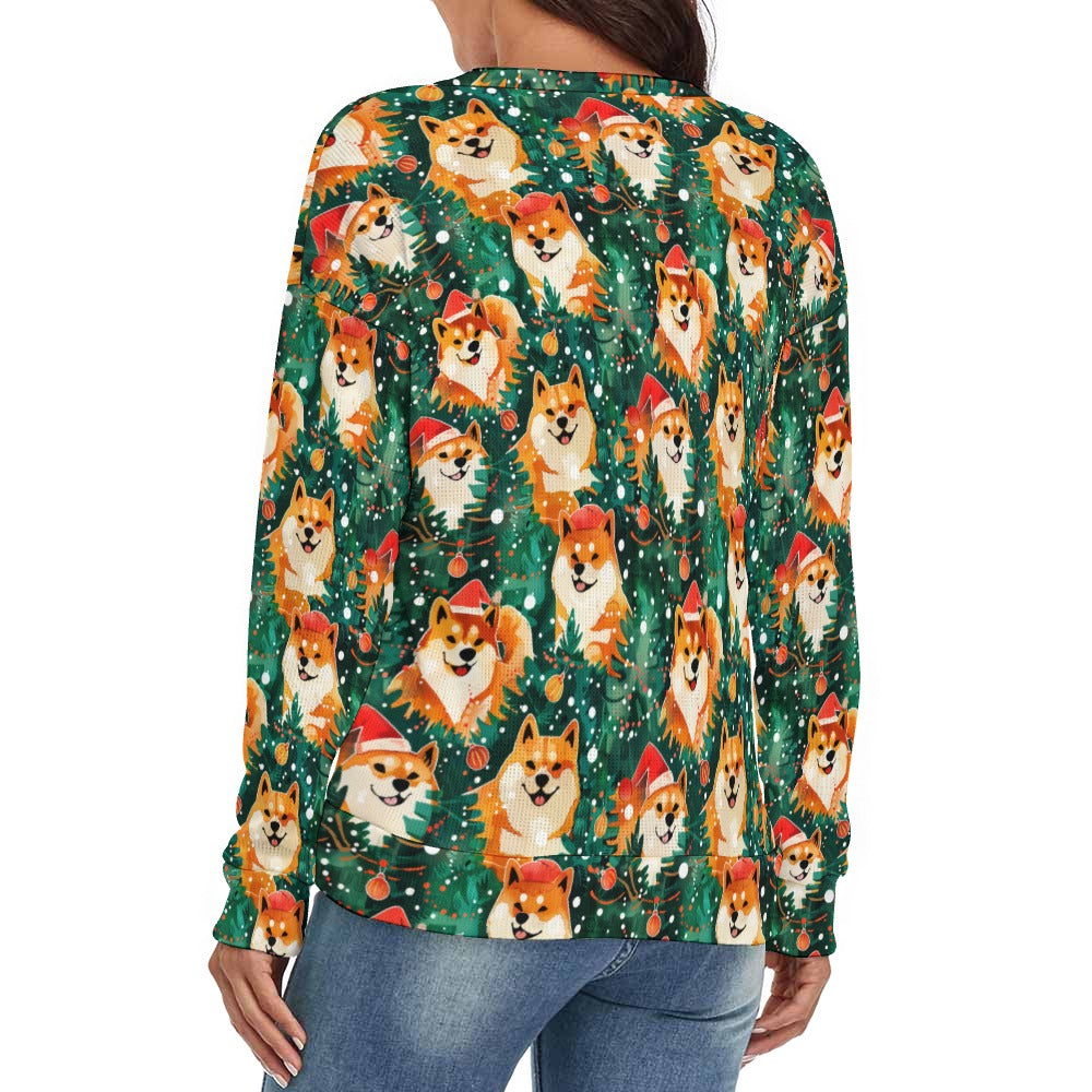Celebrate the joy of the season with our Merry Shiba Merriment Women's V-Neck Christmas Sweater, a perfect blend of festive spirit and canine charm.