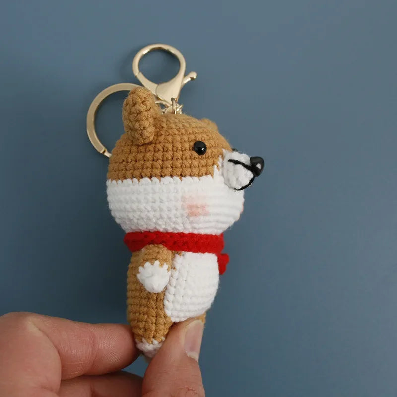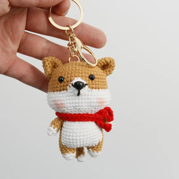 Shiba Inu Keychain - Adorable Knitted Shiba Inu with Red Scarf