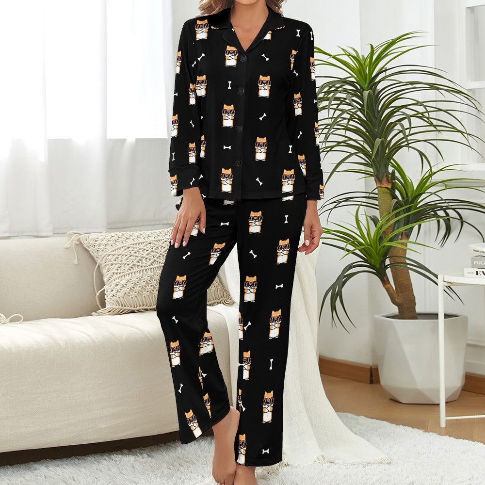 Cool Shiba Shades Pajamas Set for Women-S-Black-33