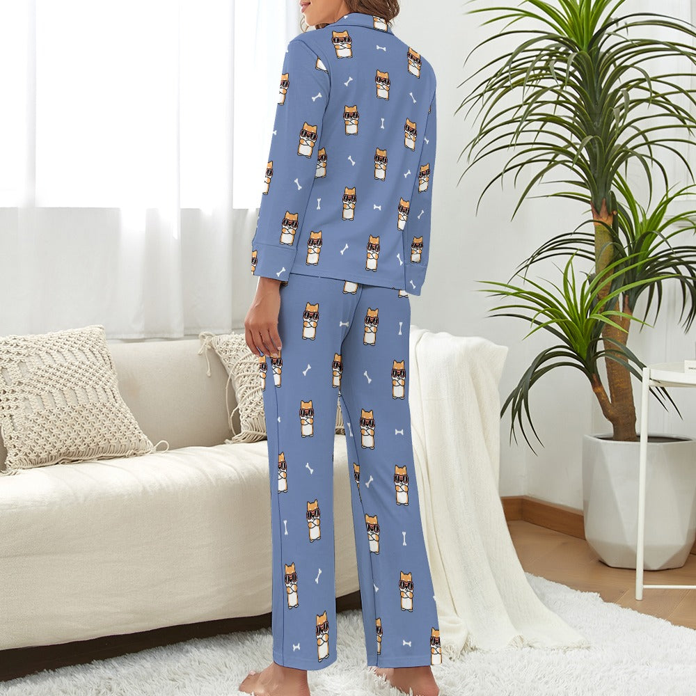 Cool Shiba Shades Pajamas Set for Women-S-CornflowerBlue_1-23