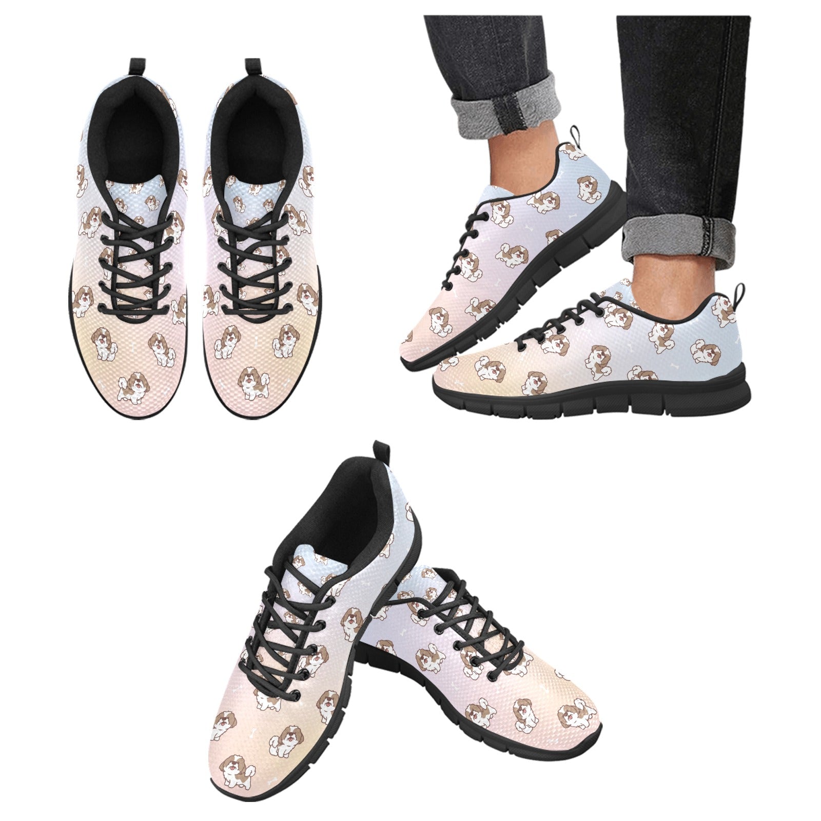 Smiling Shih Tzu Love Women's Breathable Sneakers - 7 Gradients-Footwear-Dog Mom Gifts,Shih Tzu,Shoes-Black-US13-54